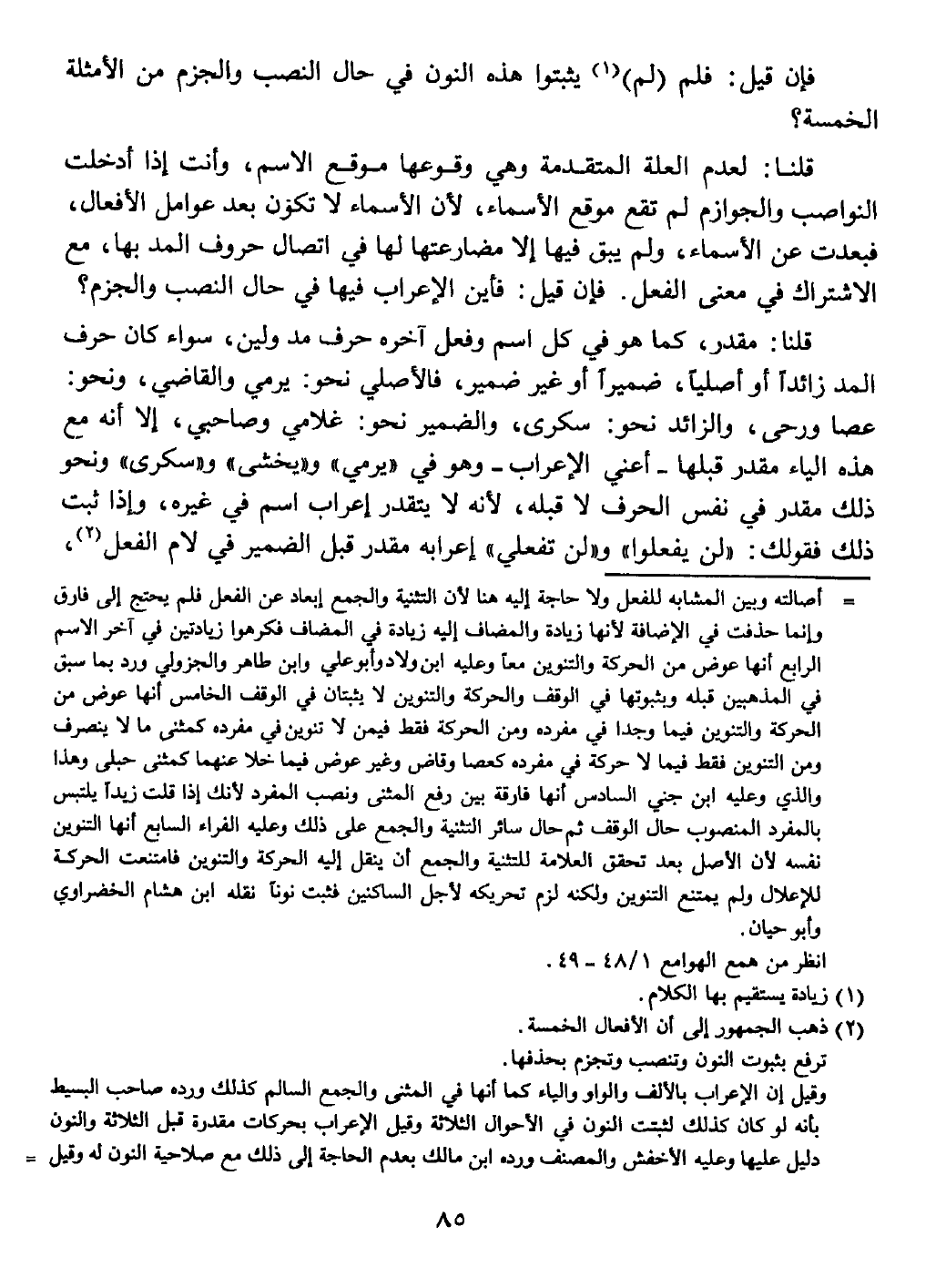 فإن قيل: فلم لم يثبتوا هذه النون في حال النصب والجزم من الأمثلة