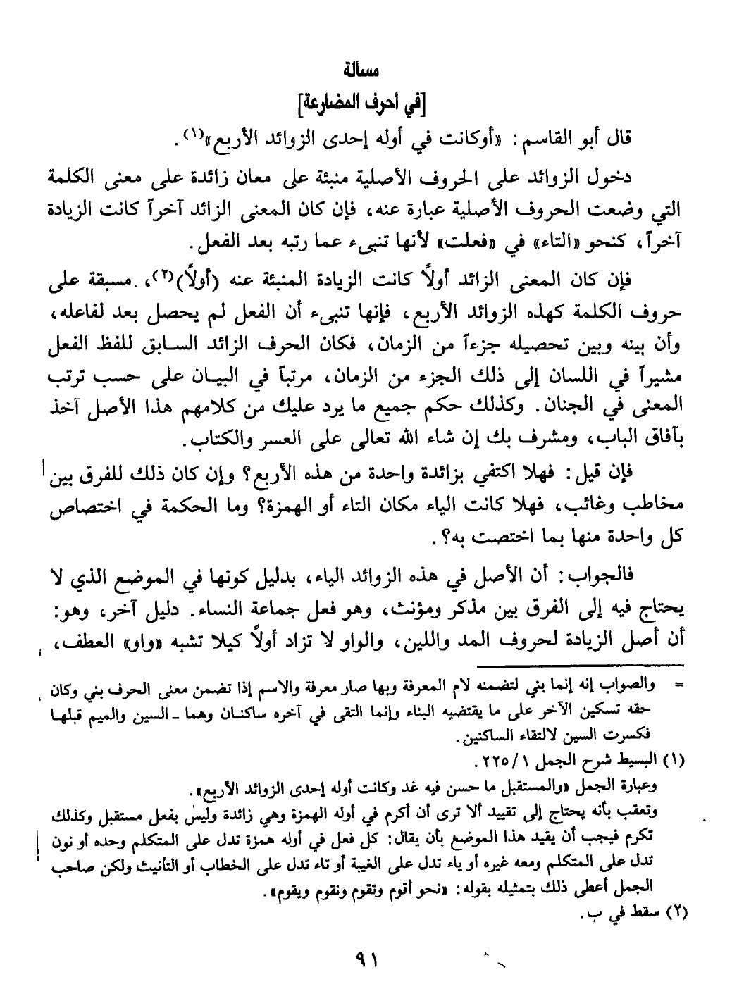 حروف الكلمة كهذه الزوائد الأربع، فإنها تنبئ أن الفعل لم يحصل بعد لفاعله، وأن بينه وبين تحصيله جزءاً من الزمان، فكان الحرف الزائد السابق للفظ الفعل مشيراً في اللسان إلى ذلك الجزء من الزمان، مرتباً في البيان على حسب ترتب المعنى في الجنان.