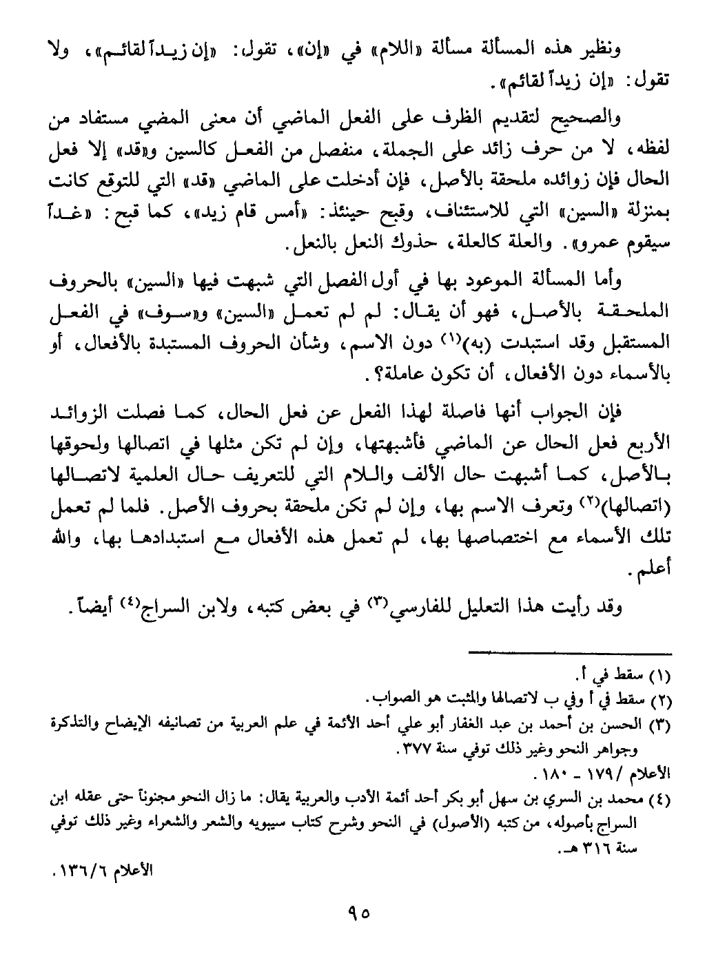 وقد رأيت هذا التعليل للفارسي في بعض كتبه، ولابن السراج أيضاً.
