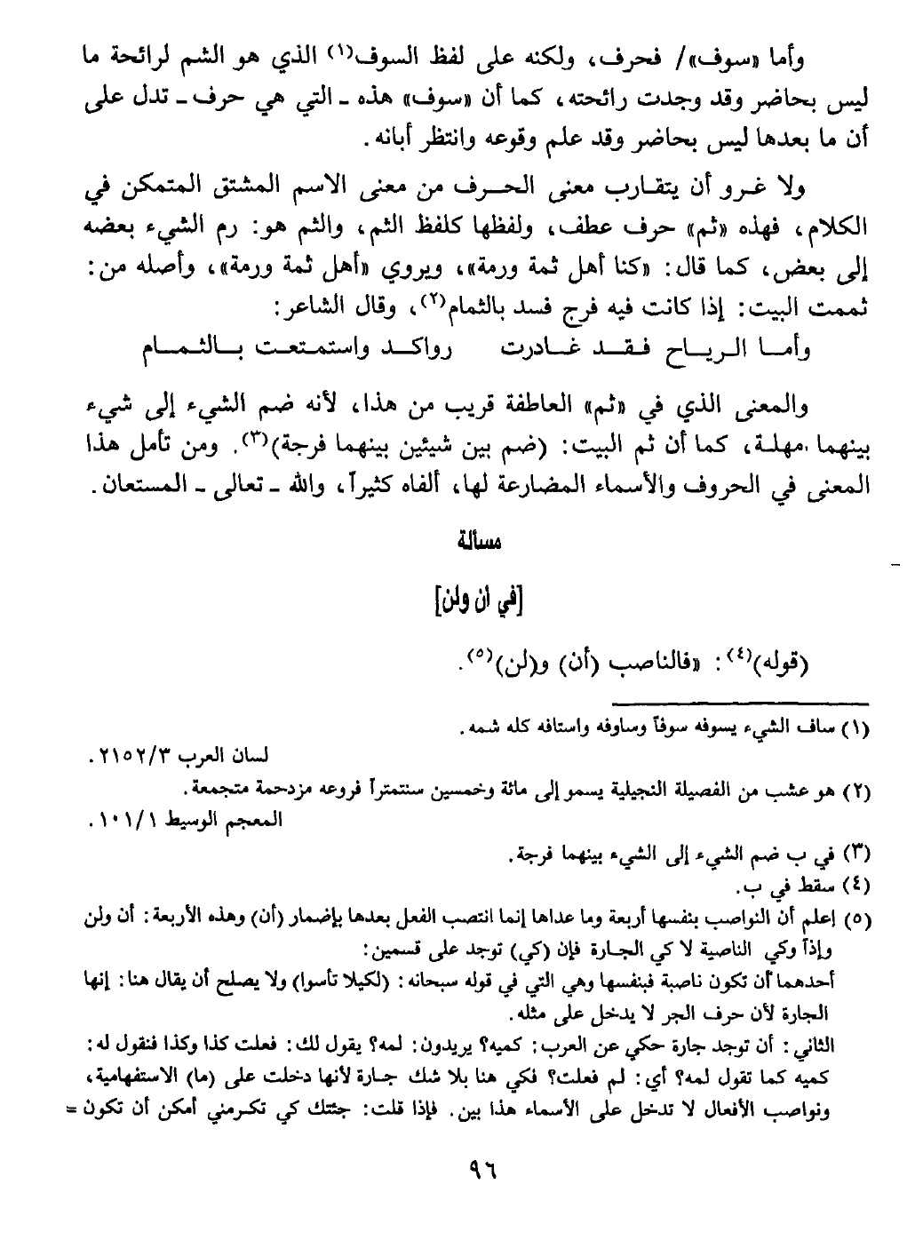الكلام، فهذه " ثم " حرف عطف، ولفظها كلفظ الثم، والثم هو: رم الشيء بعضه إلى بعض، كما قال: " كنا أهل ثمة ورمة "، ويروي " أهل ثمة ورمة "، وأصله من: ثممت البيت: إذا كانت فيه فرج فسد بالثمام.