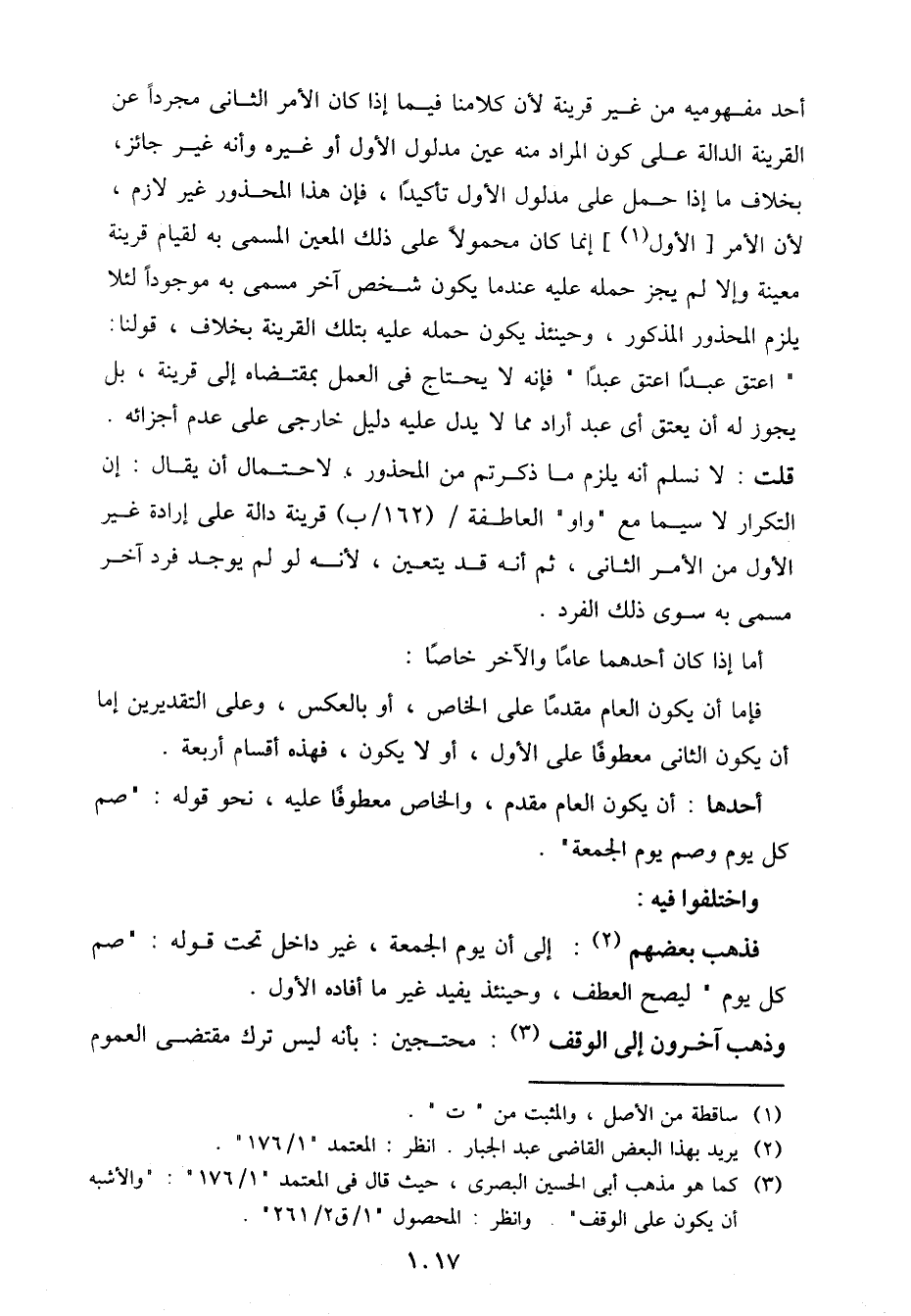 فإما أن يكون العام مقدمًا على الخاص، أو بالعكس، وعلى التقديرين إما أن يكون الثاني معطوفًا على الأول، ألا لا يكون، فهذه أقسام أربعة.