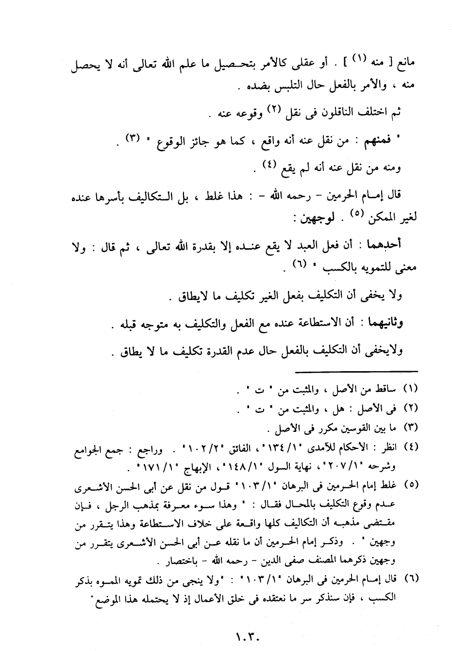 قال إمام الحرمين - رحمه الله -: هذا غلط، بل التكاليف بأسرها عنده لغير الممكن. لوجهين: