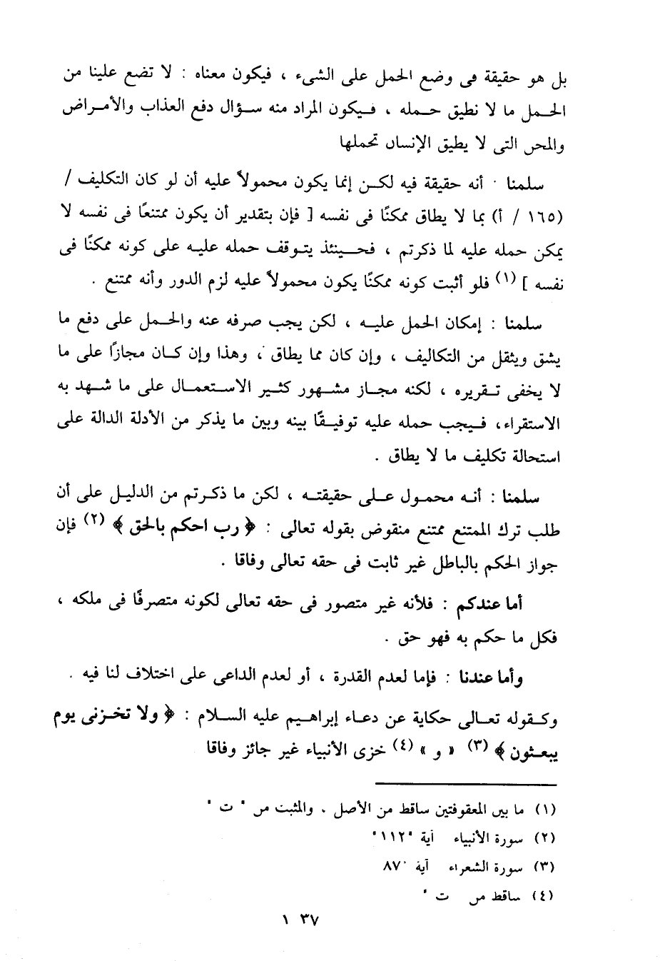 سلمنا: أنه حقيقة فيه لكن إنما يكون محمولاً عليه أن لو كان التكليف / (165/أ) بما لا يطاق ممكنًا في نفسه [فإن بتقدير أن يكون ممتنعًا في نفسه لا يمكن حمله عليه لما ذكرتم، فحينئذ يتوقف حمله عليه على كونه ممكنًا في نفسه] فلو أثبت كونه ممكنًا يكون محمولاً عليه لزم الدور وأنه ممتنع.
