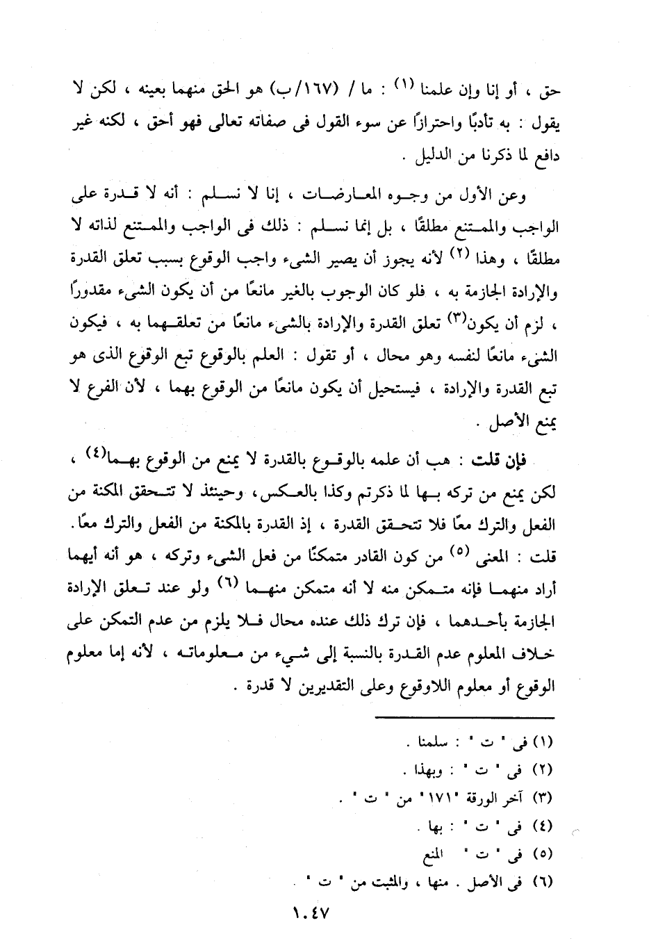 فإن قلت: هب أن علمه بالوقوع بالقدرة لا يمنع من الوقوع بهما، لكن يمنع من تركه بها لما ذكرتم وكذا بالعكس، وحينئذ لا تتحقق المكنة من الفعل والترك معًا فلا تتحقق القدرة، إذ القدرة بالمكنة من الفعل والترك معًا. قلت: المعني من كون القادر متمكنًا من فعل الشيء وتركه، هو أنه أيهما أراد منهما فإنه متمكن منه لا أنه متمكن منهما ولو عند تعلق الإرادة الجازمة بأحدهما، فإن ترك ذلك عنده محال فلا يلزم من عدم التمكن على خلاف المعلوم عدم القدرة بالنسبة إلى شيء من معلوماته، لأنه إما معلوم الوقوع أو معلوم اللاوقوع وعلى التقديرين لا قدرة.