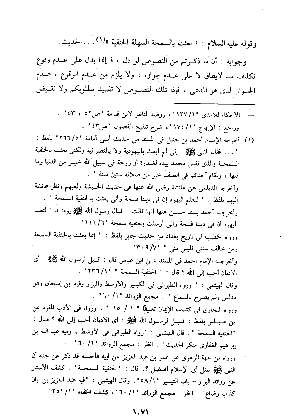 وقوله عليه السلام: "بعثت بالسمحة السهلة الحنفية" .... الحديث.