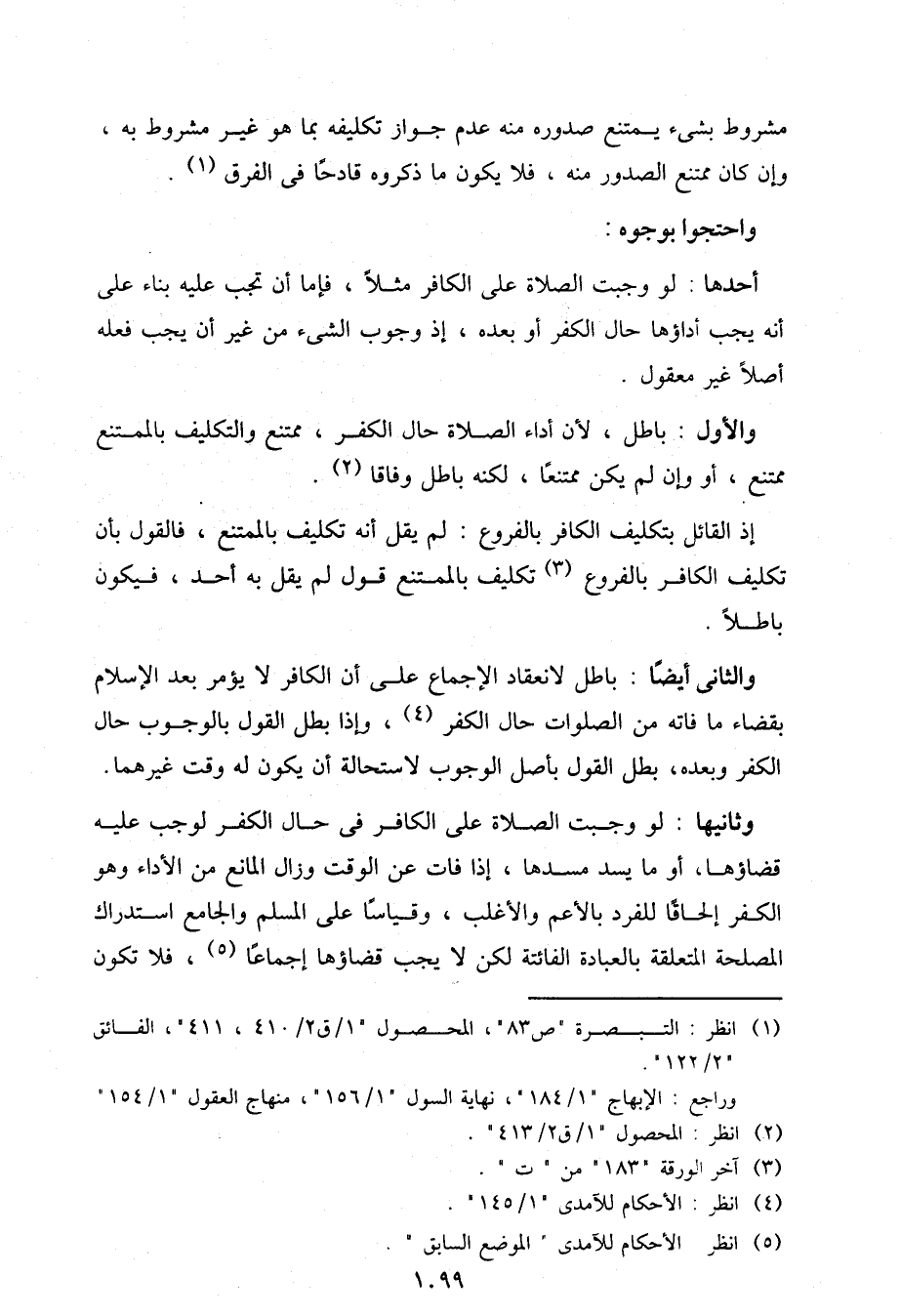 والأول: باطل، لأن أداء الصلاة حال الكفر، ممتنع والتكليف بالممتنع ممتنع، أو وإن لم يكن ممتنعًا، لكنه باطل وفاقا.