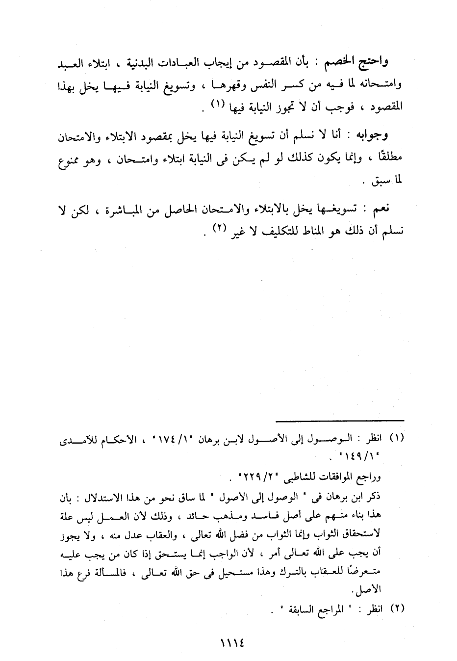 وجوابه: أنا لا نسلم أن تسويغ النيابة فيها يخل بمقصود الابتلاء والامتحان مطلقًا، وإنما يكون كذلك لو لم يكن في النيابة ابتلاء وامتحان، وهو ممنوع لما سبق.