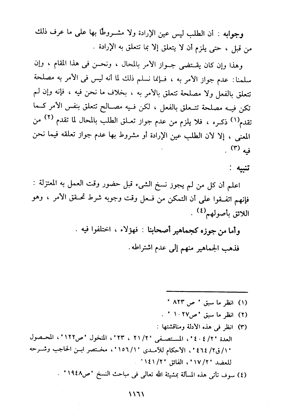 وجوابه: أن الطلب ليس عين الإرادة ولا مشروطًا بها على ما عرف ذلك من قبل، حتى يلزم أن لا يتعلق إلا بما تتعلق به الإرادة.