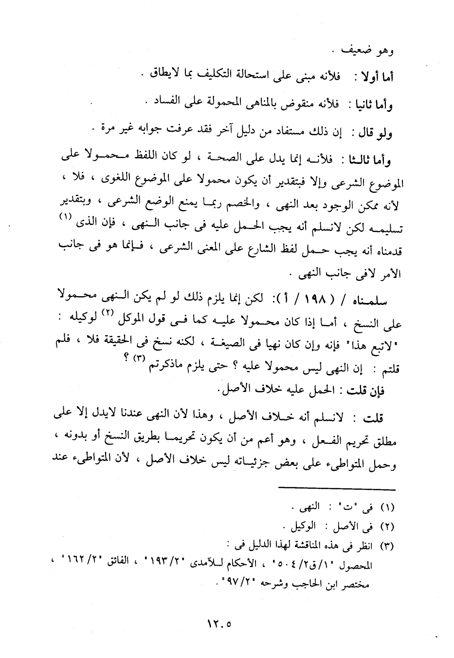 سلمناه / (198/أ): لكن إنما يلزم ذلك لو لم يكن النهي محمولا على النسخ، أما إذا كان محمولا عليه كما في قول الموكل لوكيله: "لا تبع هذا" فإنه وإن كان نهيا في الصيغة، لكنه نسخ في الحقيقة فلا، فلم قلتم: إن النهي ليس محمولا عليه؟ حتى يلزم ما ذكرتم؟