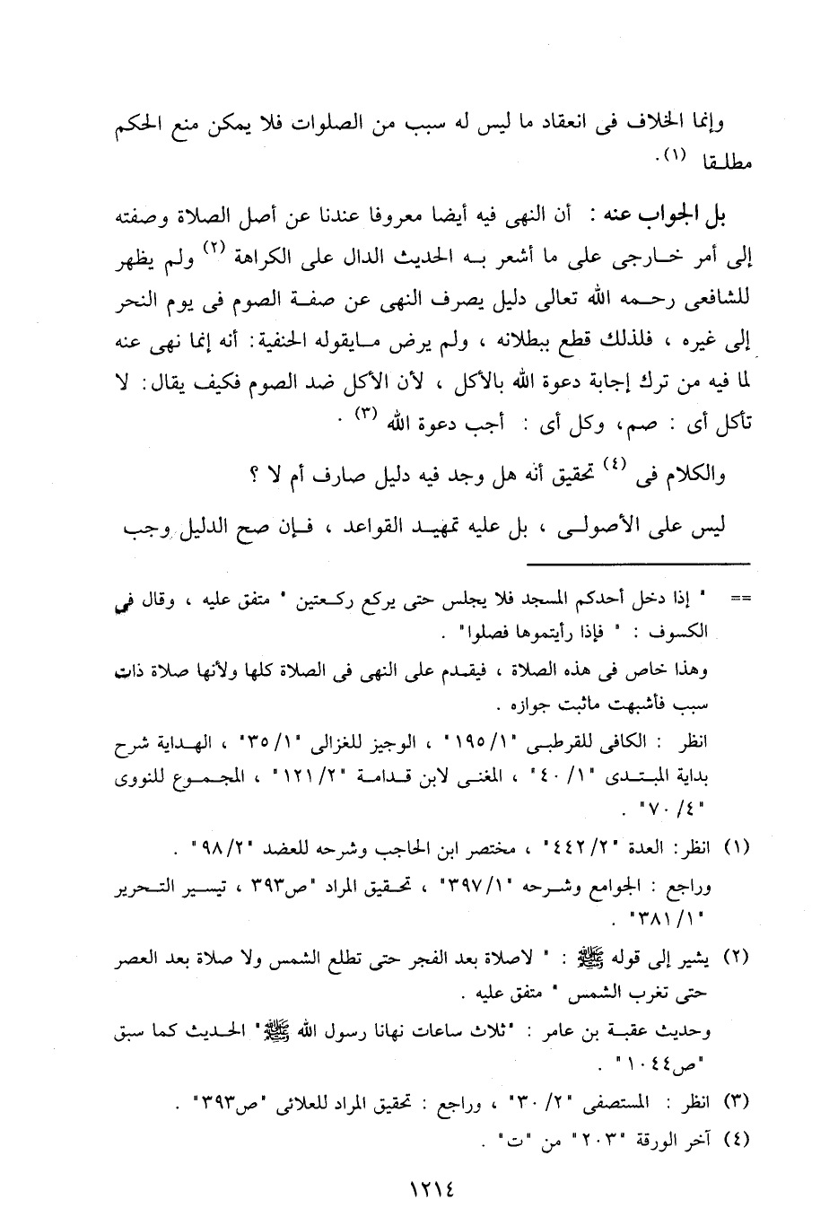 بل الجواب عنه: أن النهي فيه أيضا معروفا عندنا عن أصل الصلاة وصفته إلى أمر خارجي على ما أشعر به الحديث الدال على الكراهة ولم يظهر للشافعي رحمه الله تعالى دليل يصرف النهي عن صفة الصوم في يوم النحر إلى غيره، فلذلك قطع ببطلانه، ولم يرض ما يقوله الحنفية: أنه إنما نهي عنه لما فيه من ترك إجابة دعوة الله بالأكل، لأن الأكل ضد الصوم فكيف يقال: لا تأكل أي: صم، وكل أي: أجب دعوة الله.
