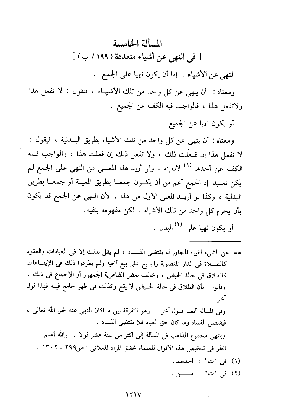 النهي عن الأشياء: إما أن يكون نهيا على الجمع.