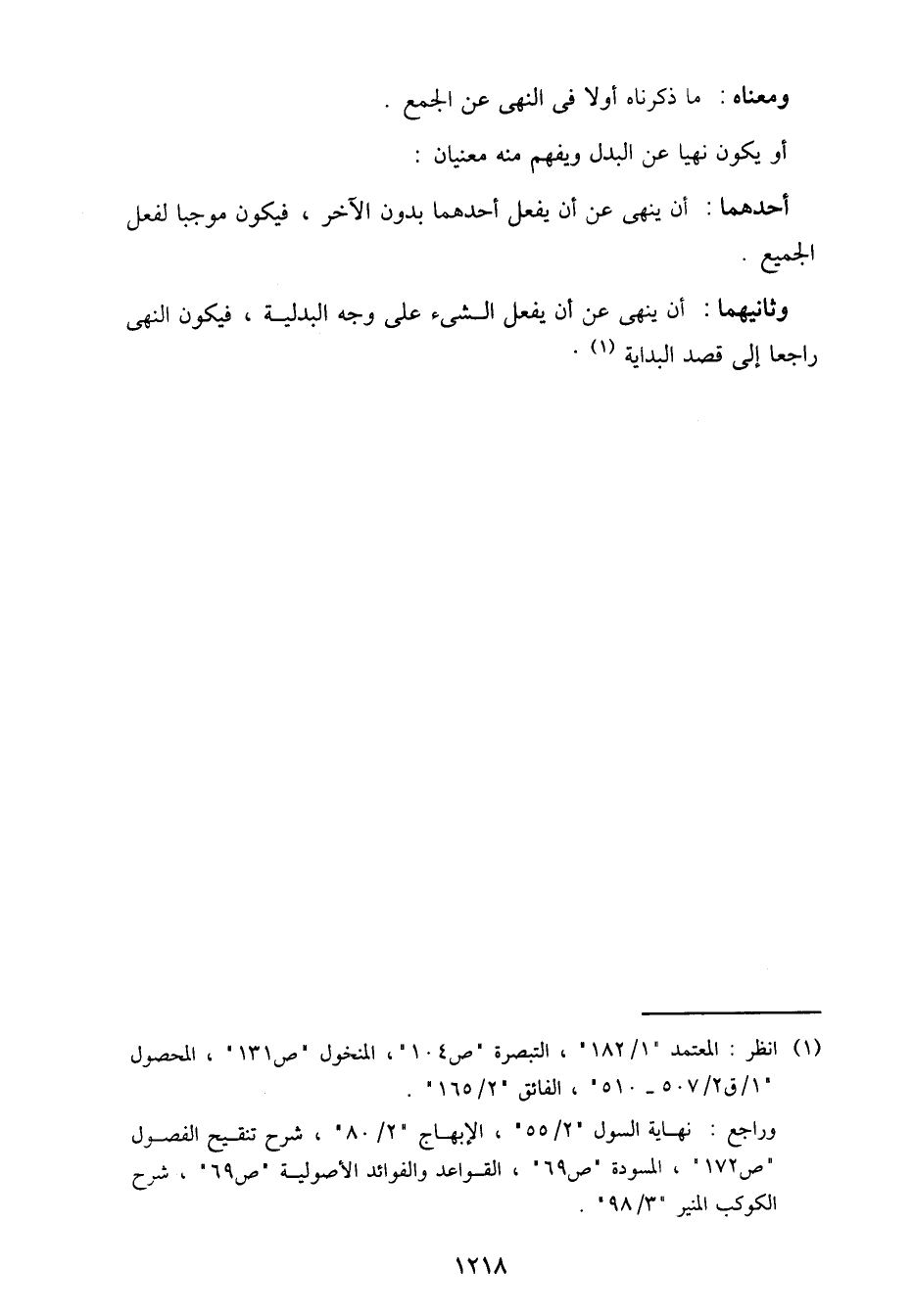وثانيهما: أن ينهي عن أن يفعل الشيء على وجه البدلية، فيكون النهي راجعا إلى قصد البداية.