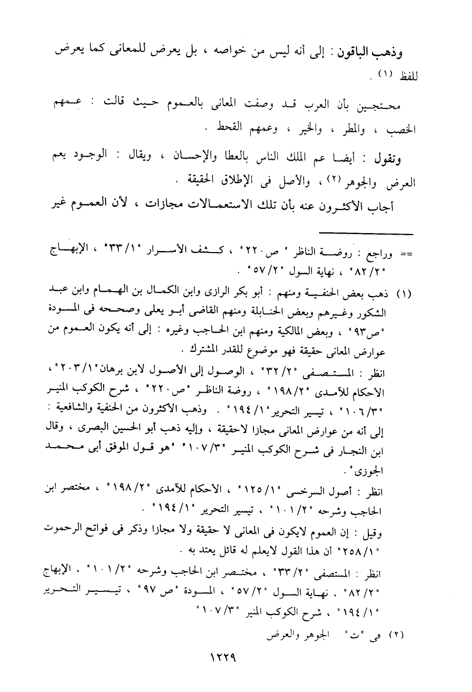 وذهب الباقون: إلى أنه ليس من خواصه، بل يعرض للمعاني كما يعرض للفظ.