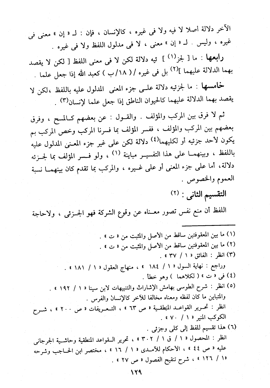 الآخر دلالة أصلا لا فيه ولا في غيره، كالإنسان، فإن: لـ "إن" معنى في غيره، وليس لـ "إن" معنى، لا في مدلول اللفظ ولا في غيره.