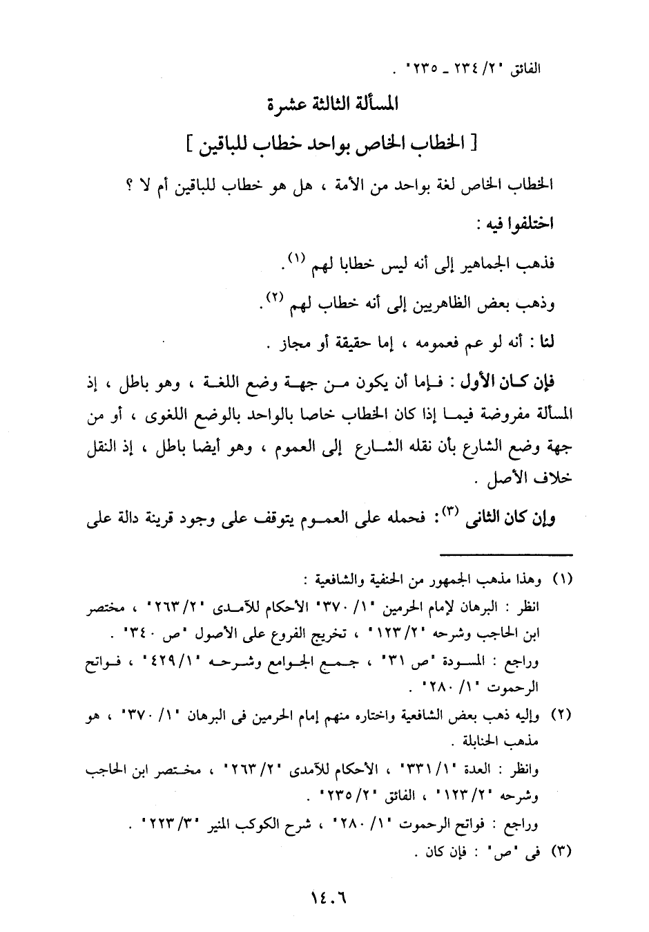 الخطاب الخاص لغة بواحد من الأمة، هل هو خطاب للباقين أم لا؟