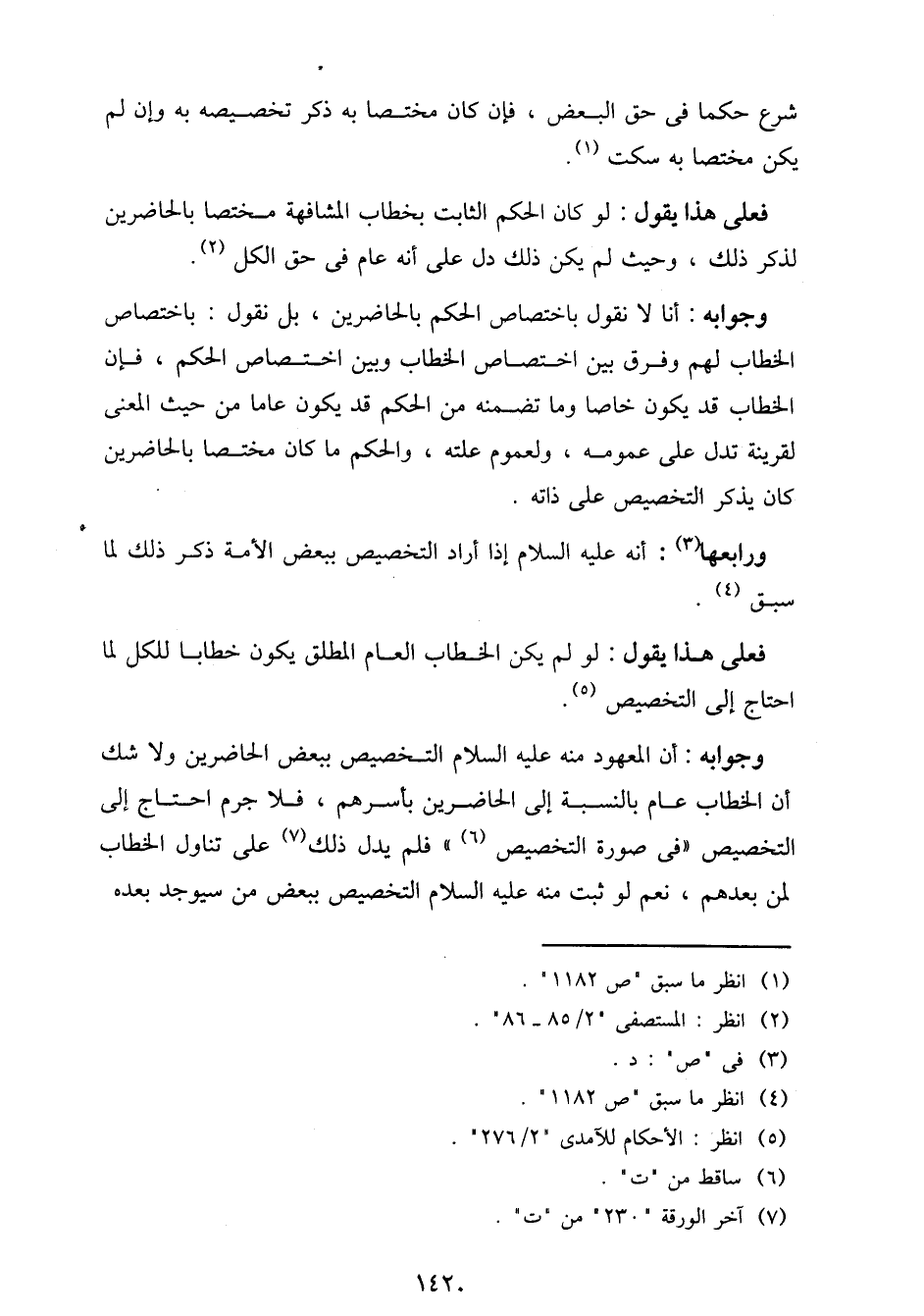 وجوابه: أن المعهود منه عليه السلام التخصيص ببعض الحاضرين ولا شك أن الخطاب عام بالنسبة إلى الحاضرين بأسرهم، فلا جرم احتاج إلى التخصيص في صورة التخصيص" فلم يدل ذلك على تناول الخطاب لمن بعدهم، نعم لو ثبت منه عليه السلام التخصيص ببعض من سيوجد بعده