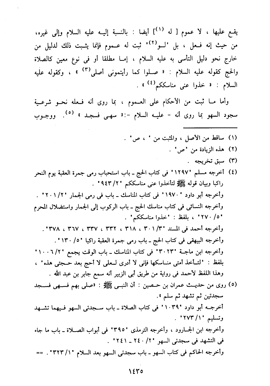 وأما ما ثبت من الأحكام على العموم، بما روي أنه فعله نحو شرعية سجود السهو بما روى أنه - عليه السلام -: "سهي فسجد". ووجوب