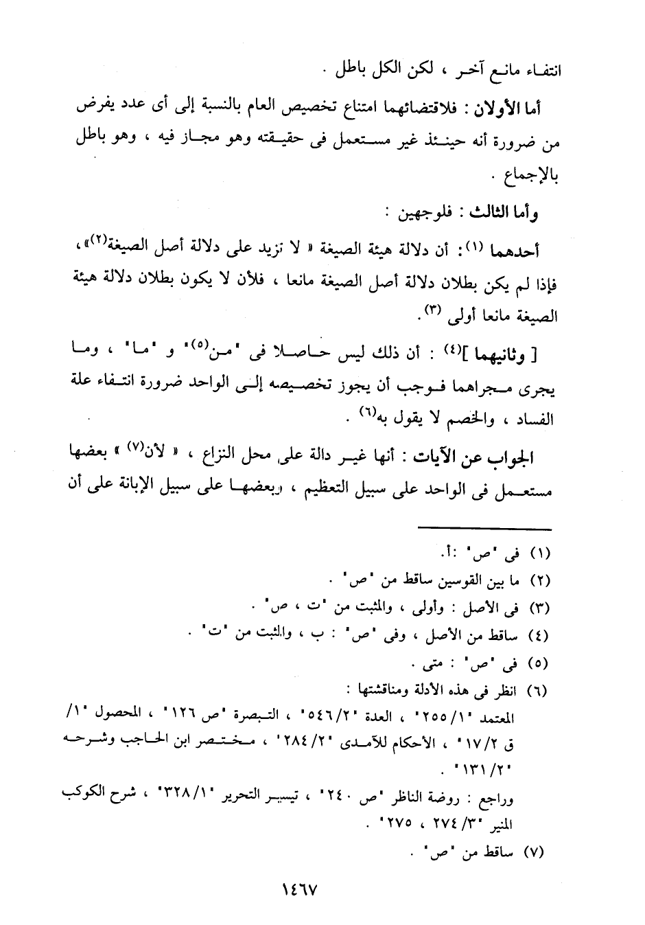 [وثانيهما]: أن ذلك ليس حاصلا في "من" و"ما"، وما يجري مجراهما فوجب أن يجوز تخصيصه إلى الواحد ضرورة انتفاء علة الفساد، والخصم لا يقول به.