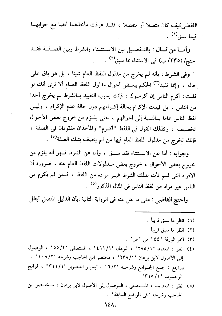 وفي الشرط: بأنه لم خرج من مدلول اللفظ العام شيئا، بل هو باق على حاله، وإنما تقيد الحكم ببعض أحوال مدلول اللفظ العام ألا ترى أنك لو قلت: أكرم الناس إن أكرموك، فإنك بسبب التقييد بالشرط لم يخرج أحدا من الناس، بل قيدت الإكرام بحالة إكرامهم دون حالة عدم الإكرام، وليس لفظ الناس عاما بالنسبة إلى أحوالهم، حتى يلزم من خروج بعض الأحوال تخصيصه، وكذلك القول في اللفظ "أكرم" والمأخذان مفقودان في الصفة، فإنك تخرج من مدلول اللفظ العام فيها من لم يتصف بتلك الصفة.