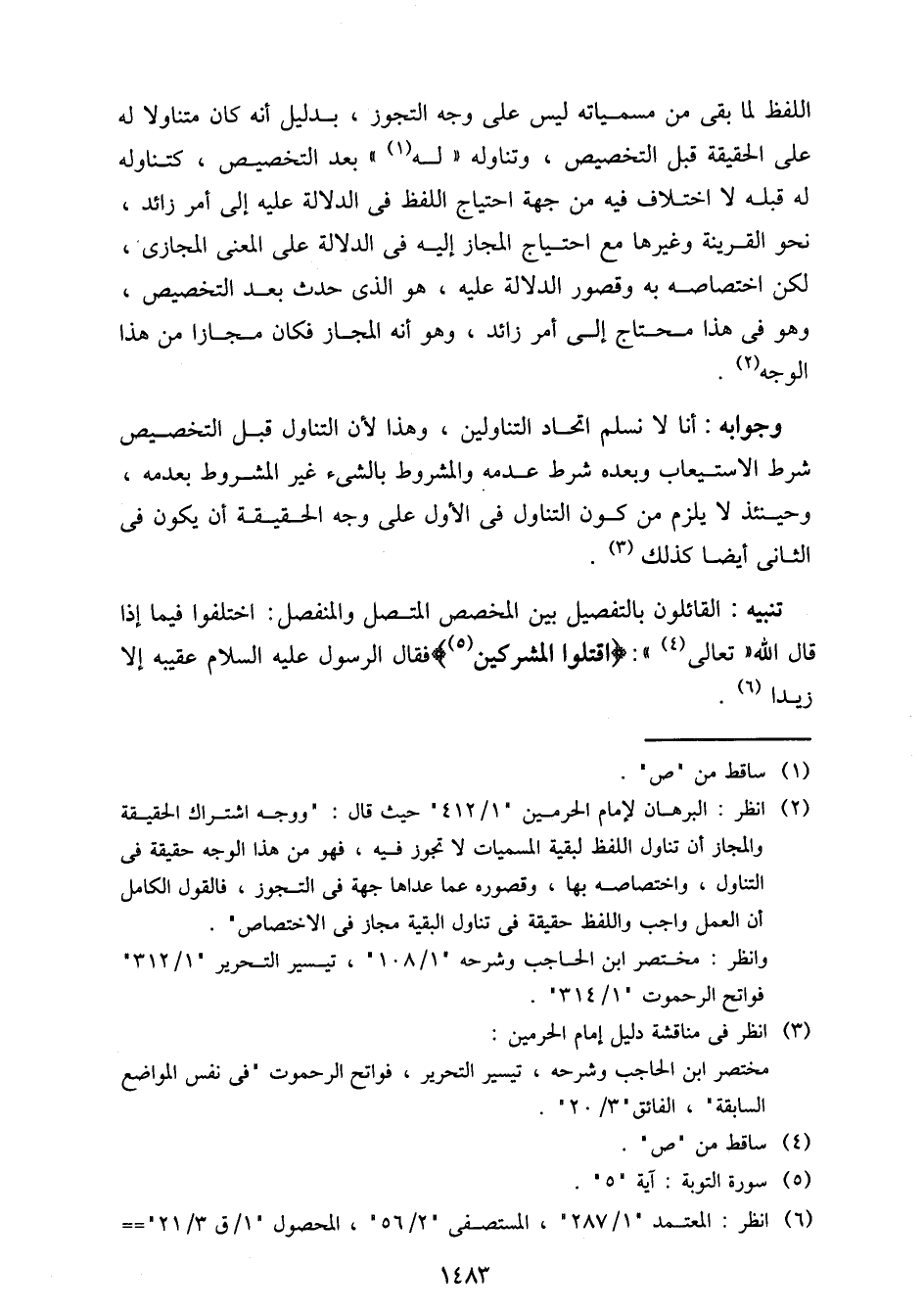 وجوابه: أنا لا نسلم اتحاد التناولين، وهذا لأن التناول قبل التخصيص شرط الاستيعاب وبعده شرط عدمه والمشروط بشيء غير المشروط بعدمه، وحينئذ لا يلزم من كون التناول في الأول على وجه الحقيقة أن يكون في الثاني أيضا كذلك.