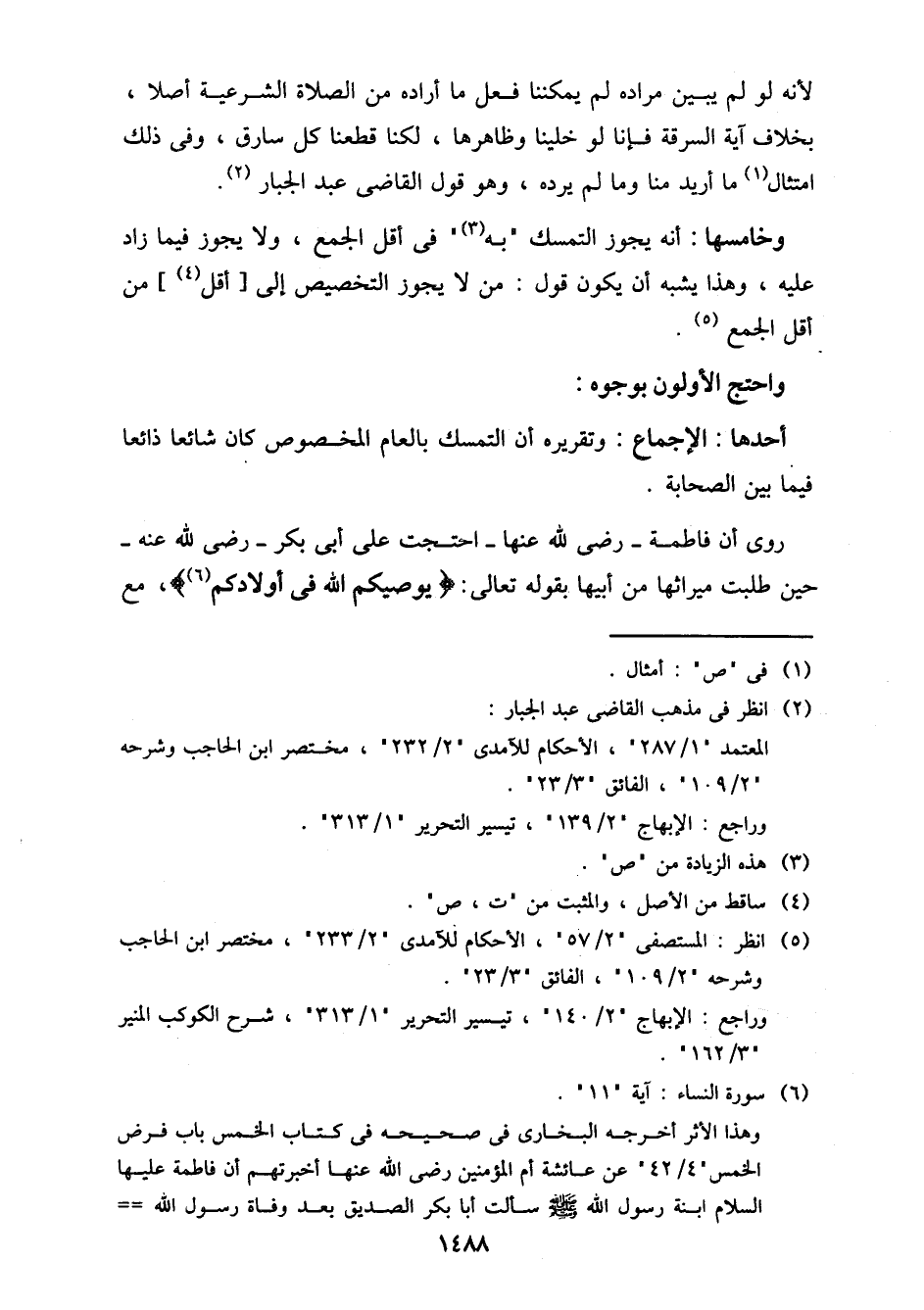 روي أن فاطمة- رضي الله عنها- احتجت على أبي بكر- رضي الله عنه- حين طلبت ميراثها من أبيها بقوله تعالى: {يوصيكم الله في أولادكم}، مع