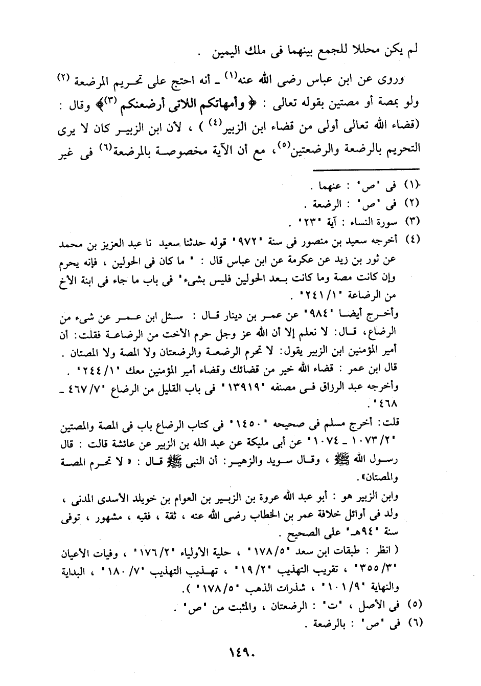 وروي عن ابن عباس رضي الله عنه أنه- احتج على تحريم المرضعة ولو بمصة أو مصتين بقوله تعالى: {وأمهاتكم اللاتي أرضعنكم} وقال: (قضاء الله تعالى أولى من قضاء ابن الزبير)، لأن ابن الزبير كان لا يرى التحريم بالرضعة والرضعتين، مع أن الآية مخصوصة بالمرضعة في غير