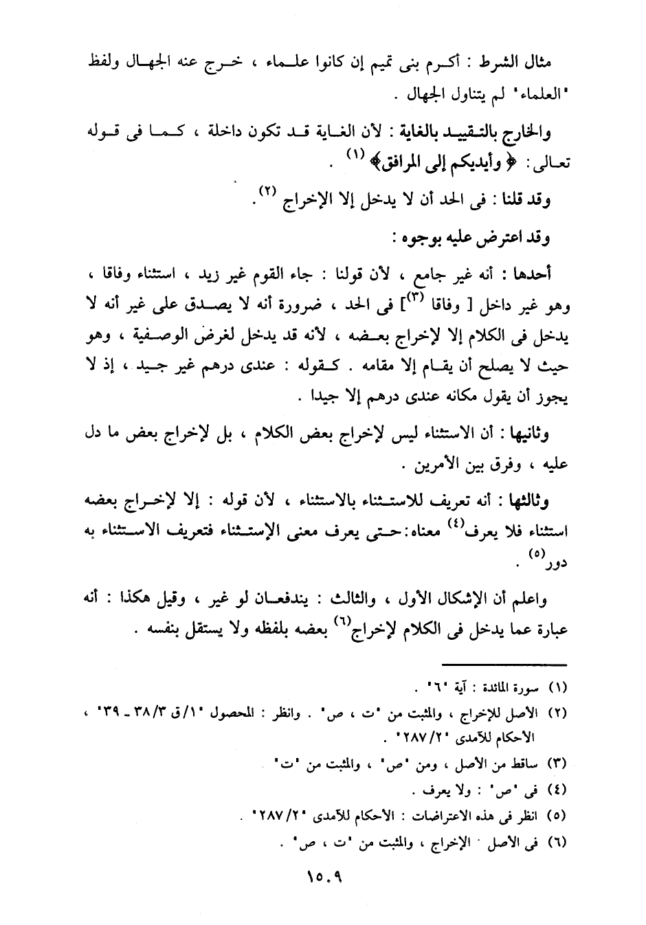 وثالثها: أنه تعريف للاستثناء بالاستثناء، لأن قوله: إلا لإخراج بعضه استثناء فلا يعرف معناه: حتى يعرف معنى الاستثناء فتعريف الاستثناء به دور.