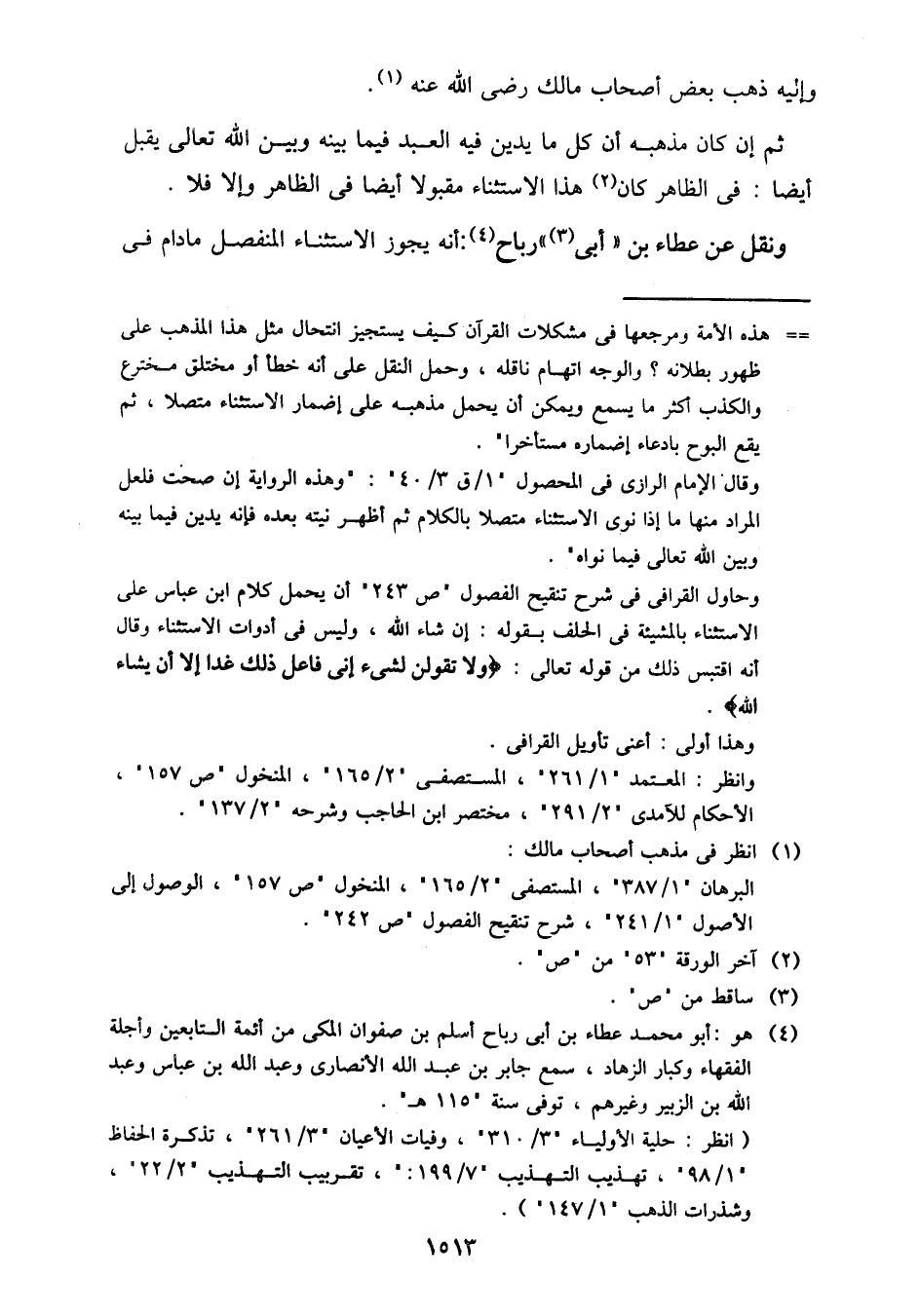 ونقل عن عطاء بن "أبي" الرباح: أنه يجوز الاستثناء المنفصل ما دام في