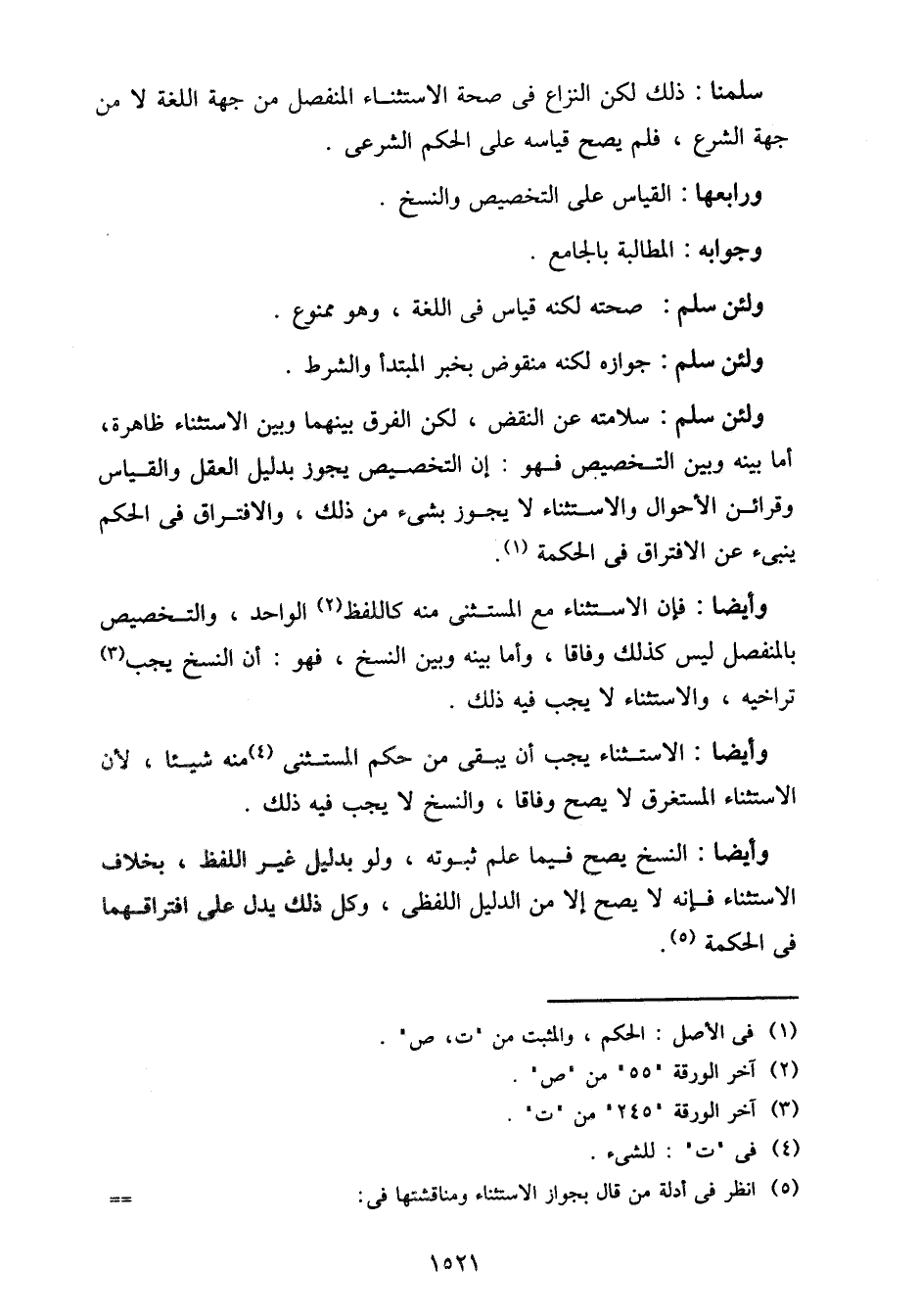 ولئن سلم: سلامته عن النقض، لكن الفرض بينهما وبين الاستثناء ظاهرة، أما بينه وبين التخصيص فهو: إن التخصيص يجوز بدليل العقل والقياس وقرائن الأحوال والاستثناء لا يجوز بشيء من ذلك، والافتراق في الحكم ينبئ عن الافتراق في الحكمة.