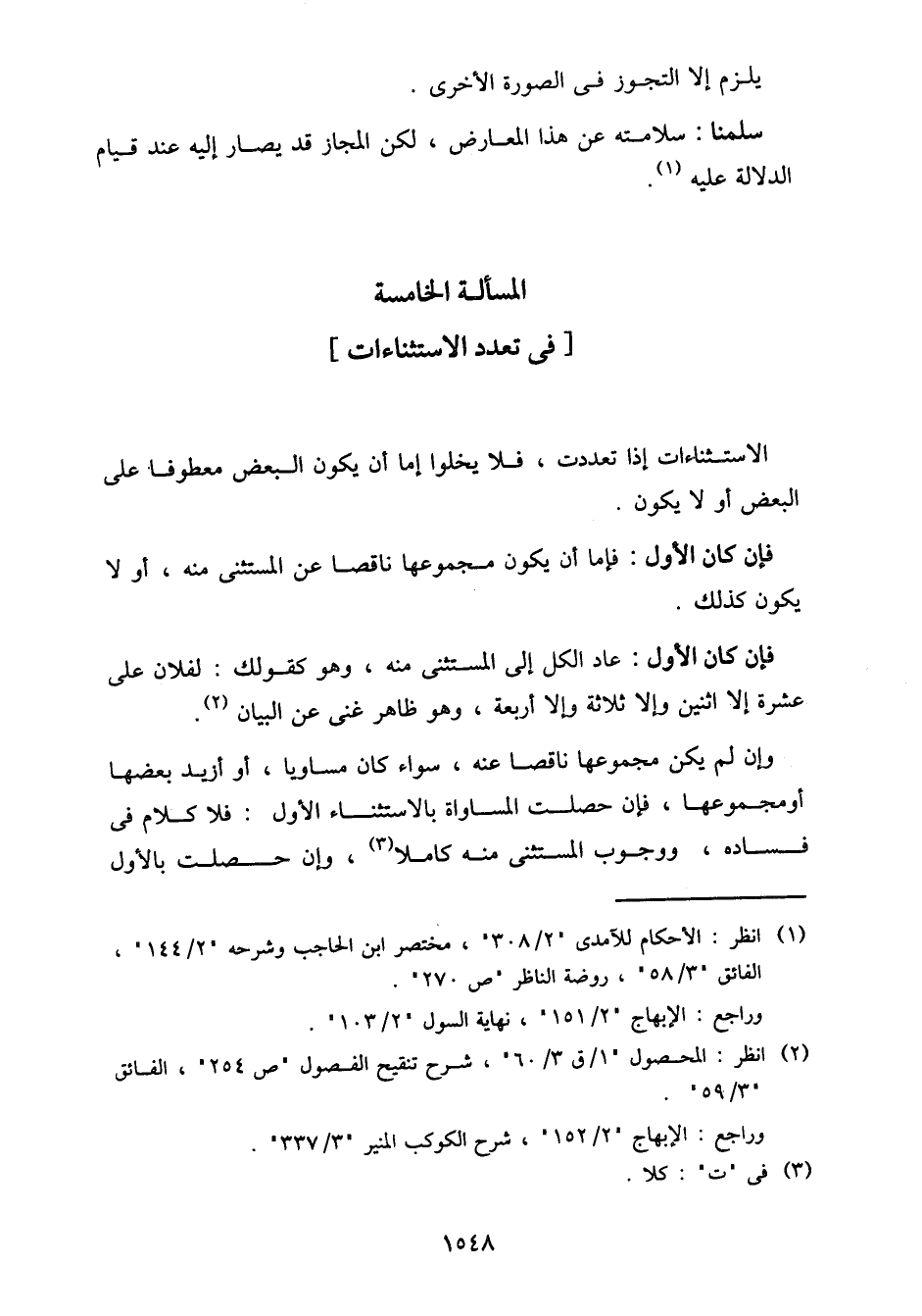 الاستثناءات إذا تعددت، فلا يخلوا إما أن يكون البعض معطوفا على البعض أو لا يكون.