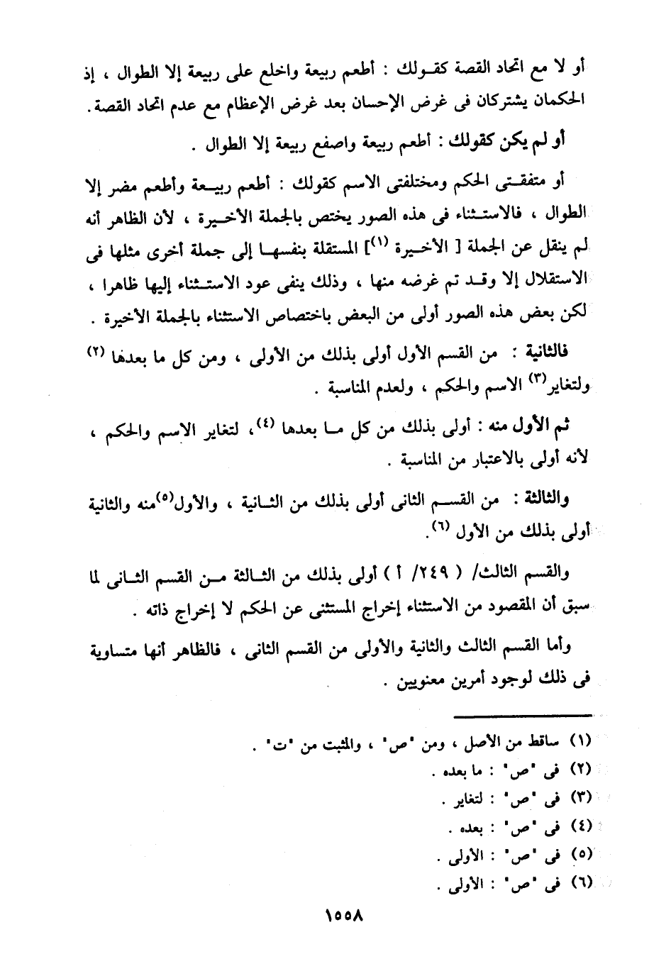 والقسم الثالث/ (249/ أ) أولى بذلك من الثالثة من القسم الثاني لما سبق أن المقصود من الاستثناء إخراج المستثنى عن الحكم لا إخراج ذاته.