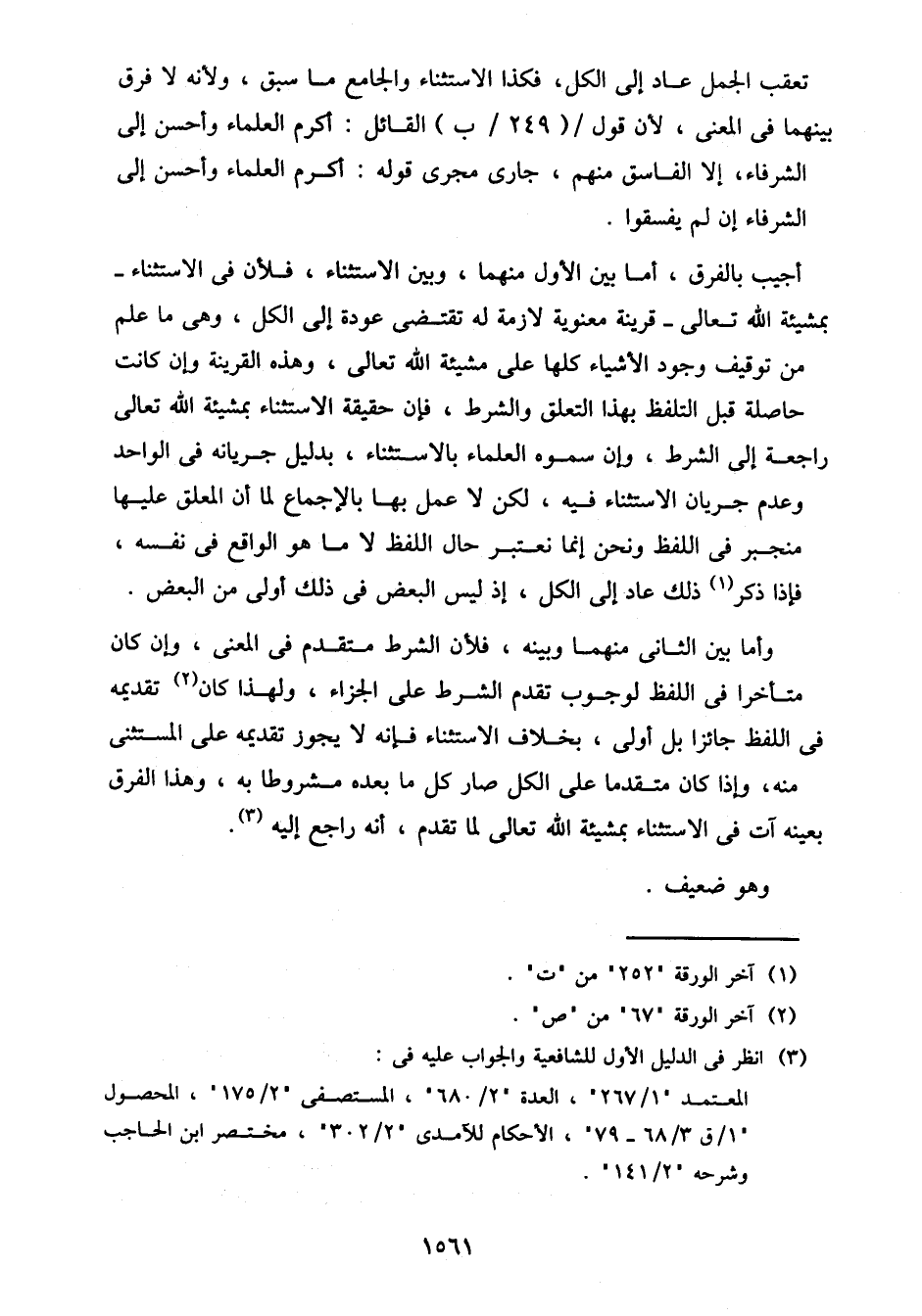 وأما بين الثاني منهما وبينه، فلأن الشرط متقدم في المعنى، وإن كان متأخرًا في اللفظ لوجوب تقدم الشرط على الجزاء، ولهذا كان تقديمه في اللفظ جائزًا بل أولى، بخلاف الاستثناء فإنه لا يجوز تقديمه على المستثنى منه، وإذا كان متقدمًا على الكل صار كل ما بعده مشروطًا به، وهذا الفرق بعينه آت في الاستثناء بمشيئة الله تعالى لما تقدم، أنه راجع إليه.
