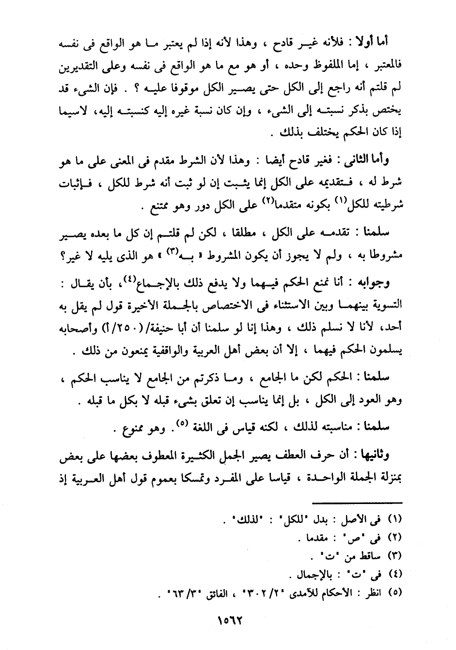 وأما الثاني: فغير قادح أيضًا: وهذا لأن الشرط مقدم في المعنى على ما هو شرط له، فتقديمه على الكل إنما يثبت إن لو ثبت أنه شرط للكل، فإثبات شرطيته للكل بكونه متقدمًا على الكل دور وهو ممتنع.