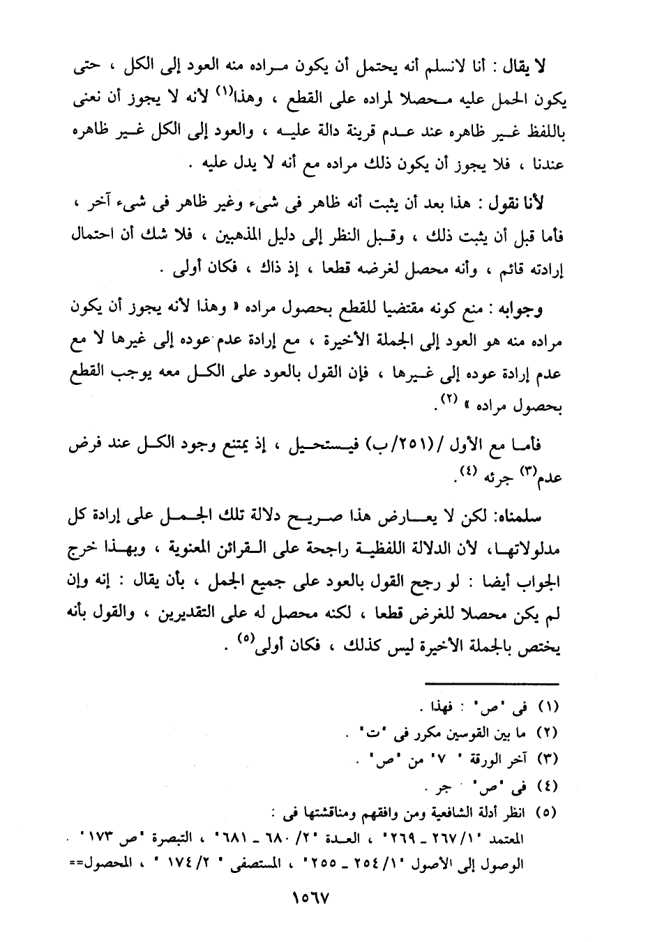 وجوابه: منع كونه مقتضيًا للقطع بحصول مراده "وهذا لأنه يجوز أن يكون مراده منه هو العود إلى الجملة الأخيرة، مع إرادة عدم عوده إلى غيرها لا مع عدم إرادة عوده إلى غيرها، فإن القول بالعود على الكل معه يوجب القطع بحصول مراده".