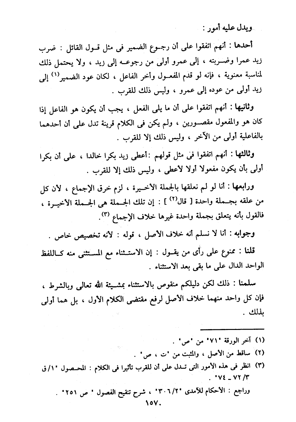 وثانيها: أنهم اتفقوا على أن ما يلي الفعل، يجب أن يكون هو الفاعل إذا كان هو والمفعول مقصورين، ولم يكن في الكلام قرينة تدل على أن أحدهما بالفاعلية أولى من الآخر، وليس ذلك إلا للقرب.
