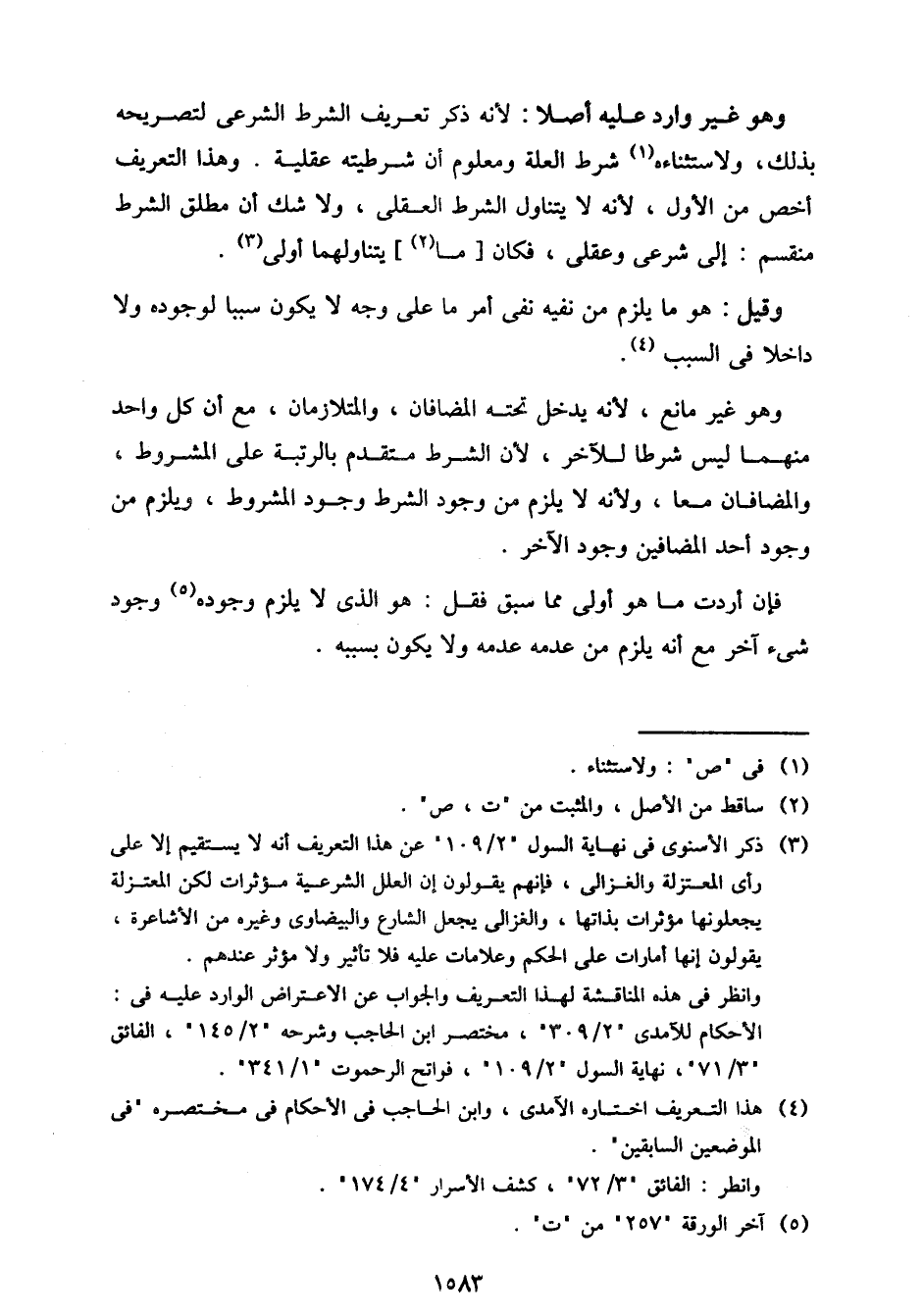 فإن أردت ما هو أولى مما سبق فقل: هو الذي لا يلزم وجوده وجود شيء آخر مع أنه يلزم من عدمه عدمه ولا يكون بسببه.