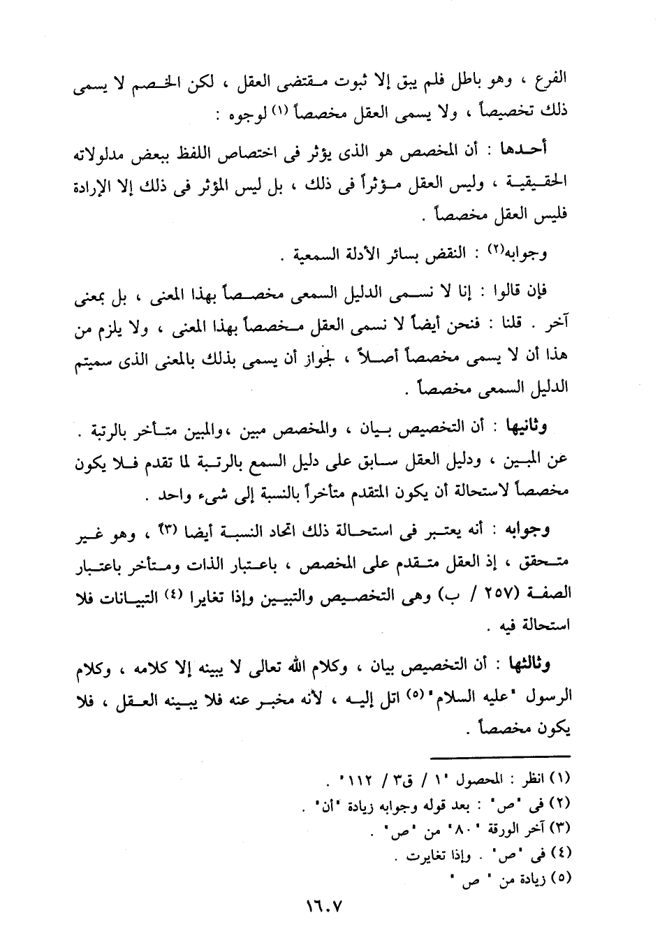 فإن قالوا: إنا لا نسمي الدليل السمعي مخصصًا بهذا المعنى، بل معنى آخر. قلنا: فنحن أيضًا لا نسمي العقل مخصصًا بهذا المعنى، ولا يلزم من هذا أن لا يسمى مخصصًا أصلًا، لجواز أن يسمى بذلك المعنى الذي سميتم الدليل السمعي مخصصًا.