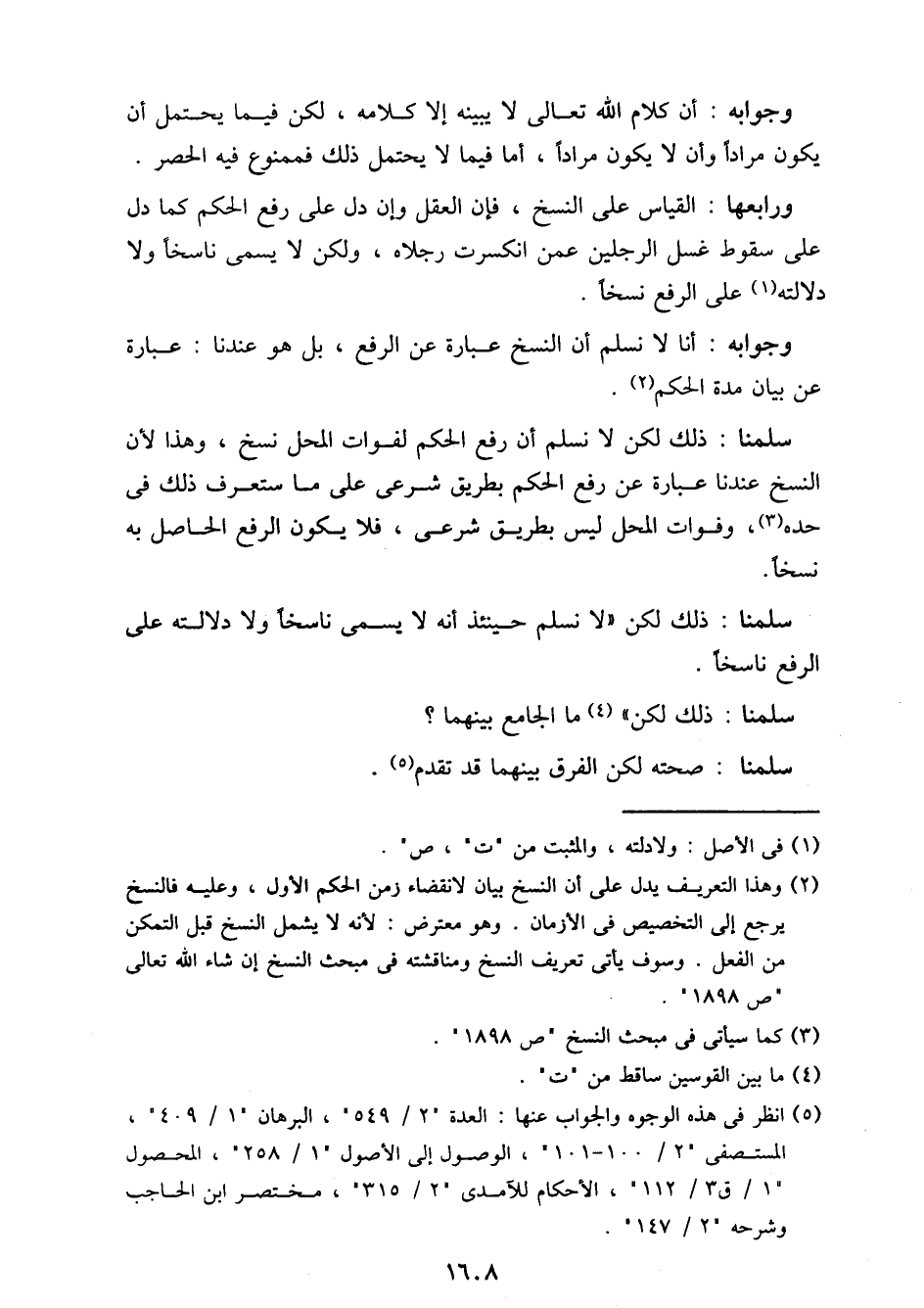 وجوابه: أنا لا نسلم أن النسخ عبارة عن الرفع، بل هو عندنا: عبارة عن بيان مدة الحكم.