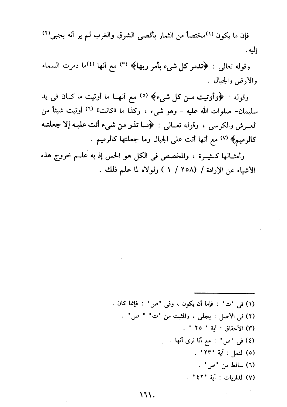 وقوله: {وأوتيت من كل شيء} مع أنها ما أوتيت ما كان في يد سليمان- صلوات الله عليه- وهو شيء، وكذا ما "كانت" أوتيت شيئًا من العرش والكرسي، وقوله تعالى: {ما تذر من شيء أتت عليه إلا جعلته كالرميم} مع أنها أتت على الجبال وما جعلتها كالرميم.