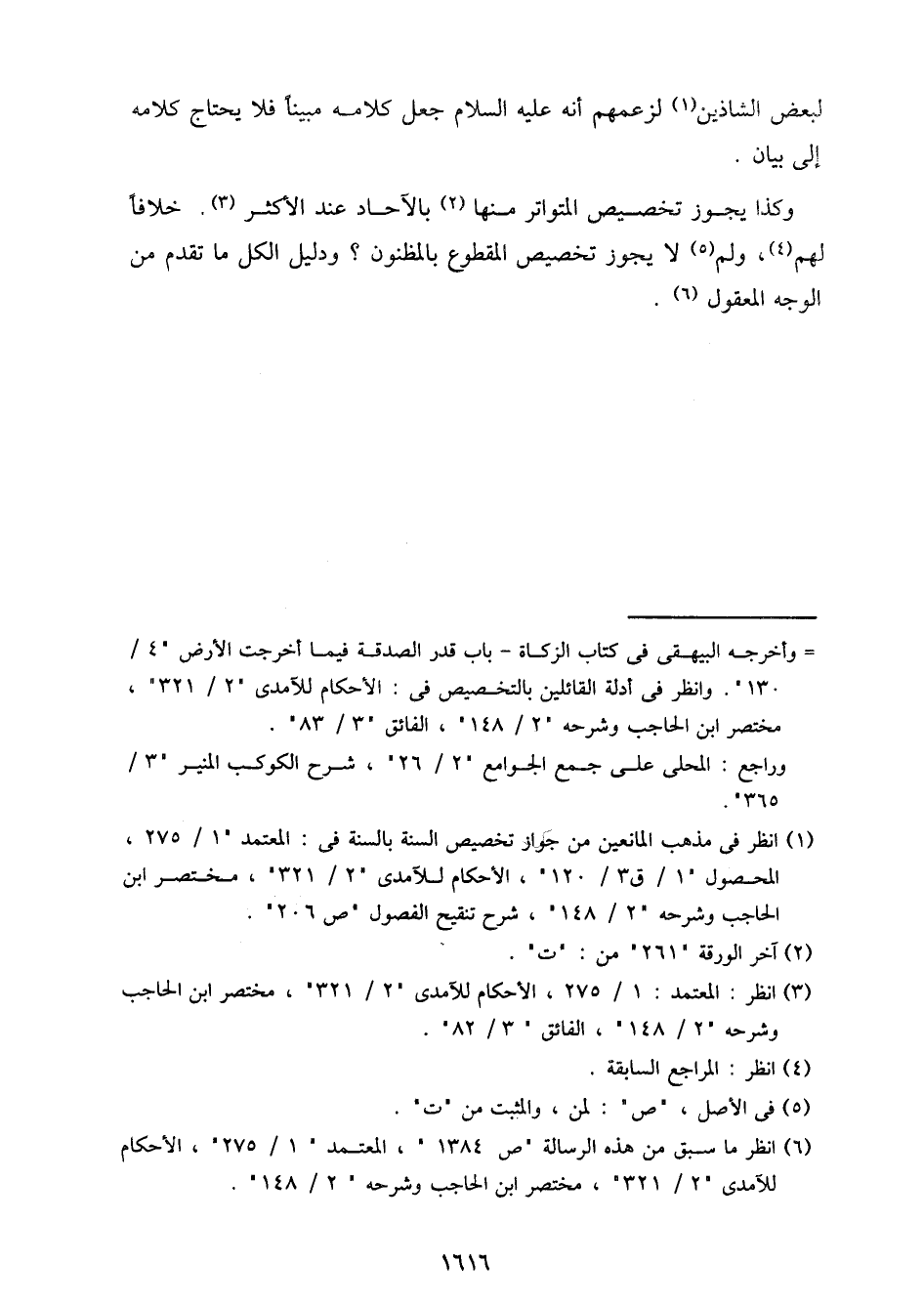 وكذا يجوز تخصيص المتواتر منها بالآحاد عند الأكثر. خلافًا لهم، ولم لا يجوز تخصيص المقطوع بالمظنون؟ ودليل الكل ما تقدم من الوجه المعقول.