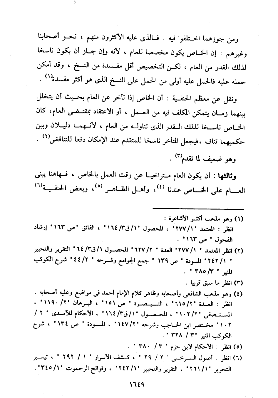 ونقل عن معظم الحنفية: أن الخاص إذا تأخر عن العام بحيث أن يتخلل بينهما زمان يتمكن المكلف فيه من العمل، أو الاعتقاد بمقتضى العام، كان الخاص ناسخا لذلك القدر الذي تناوله من العام، لأنهما دليلان وبين حكميهما تناف، فيجعل المتأخر ناسخا للمتقدم عند الإمكان دفعا للتناقض.