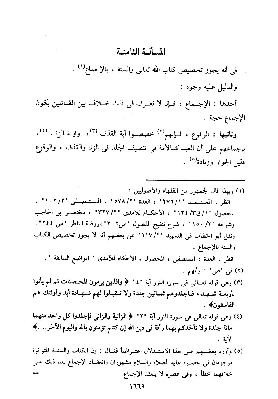 في أنه يجوز تخصيص كتاب الله تعالى والسنة، بالإجماع.