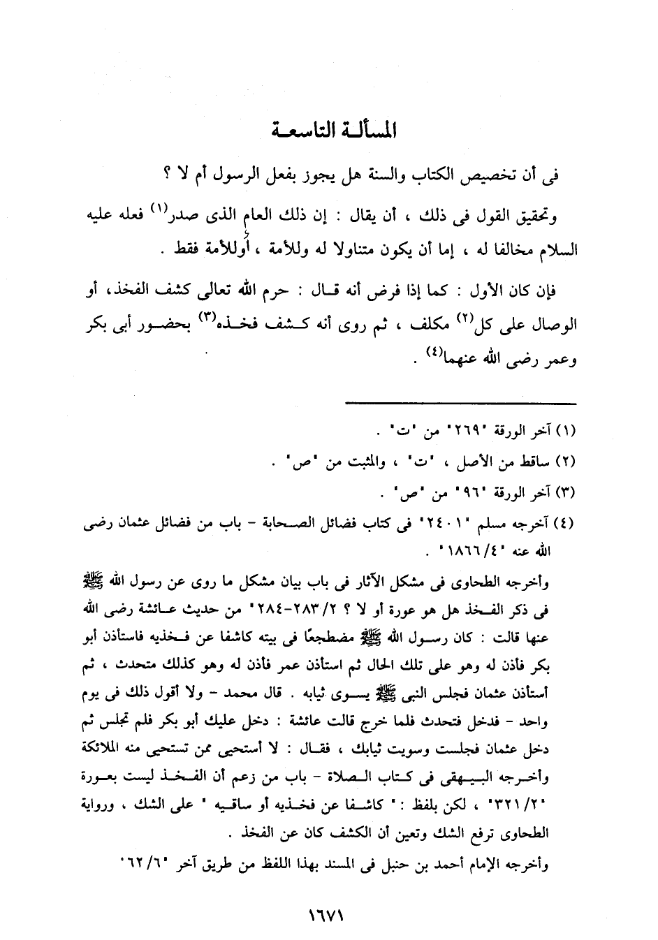في أن تخصيص الكتاب والسنة هل يجوز بفعل الرسول أم لا؟