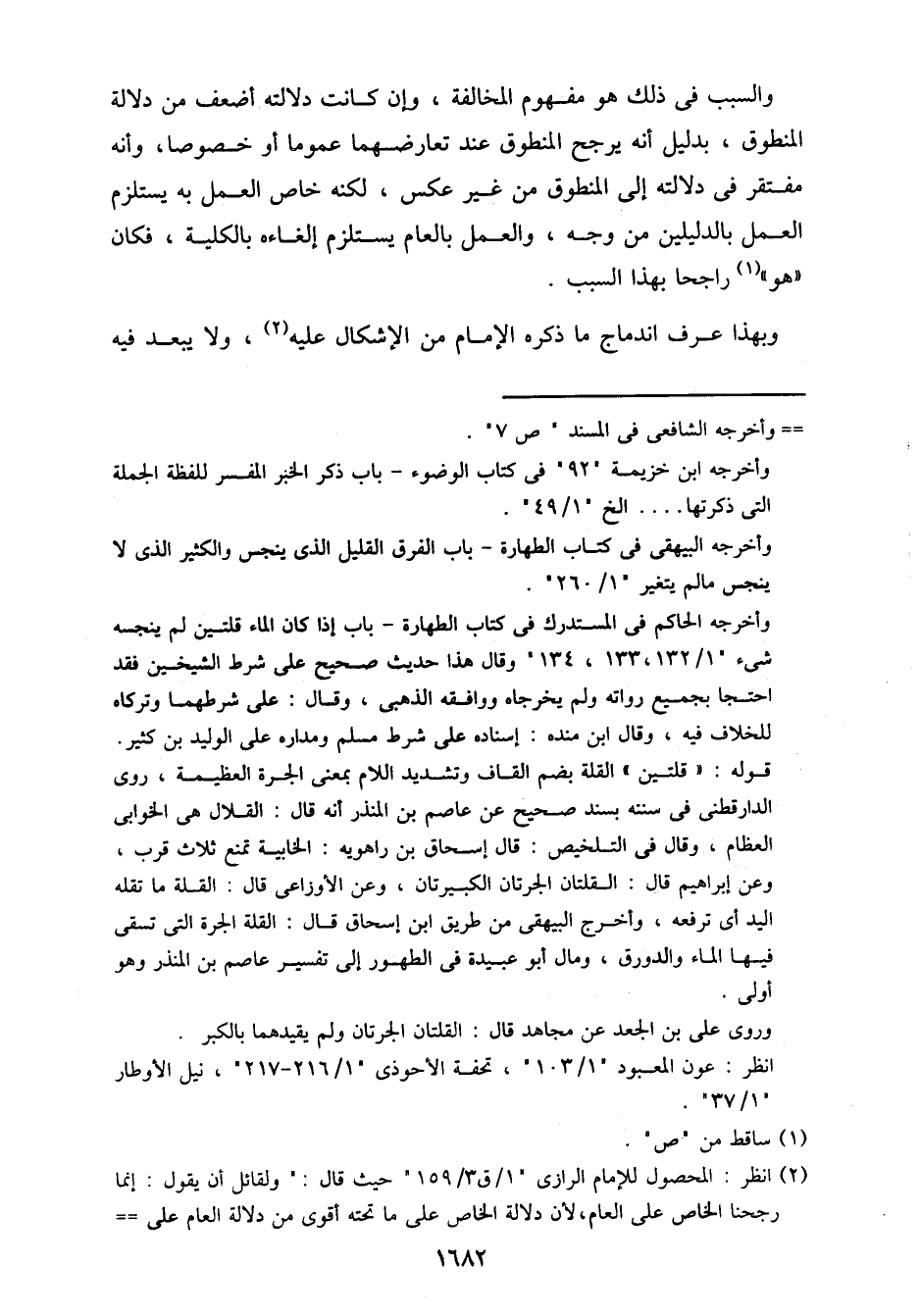 والسبب في ذلك هو مفهوم المخالفة، وإن كانت دلالته أضعف من دلالة المنطوق، بدليل أنه يرجح المنطوق عند تعارضهما عموما أو خصوصا، وأنه مفتقر في دلالته إلى المنطوق من غير عكس، لكنه خاص العمل به يستلزم العمل بالدليلين من وجه، والعمل بالعام يستلزم إلغاءه بالكلية، فكان "هو" راجحا بهذا السبب.