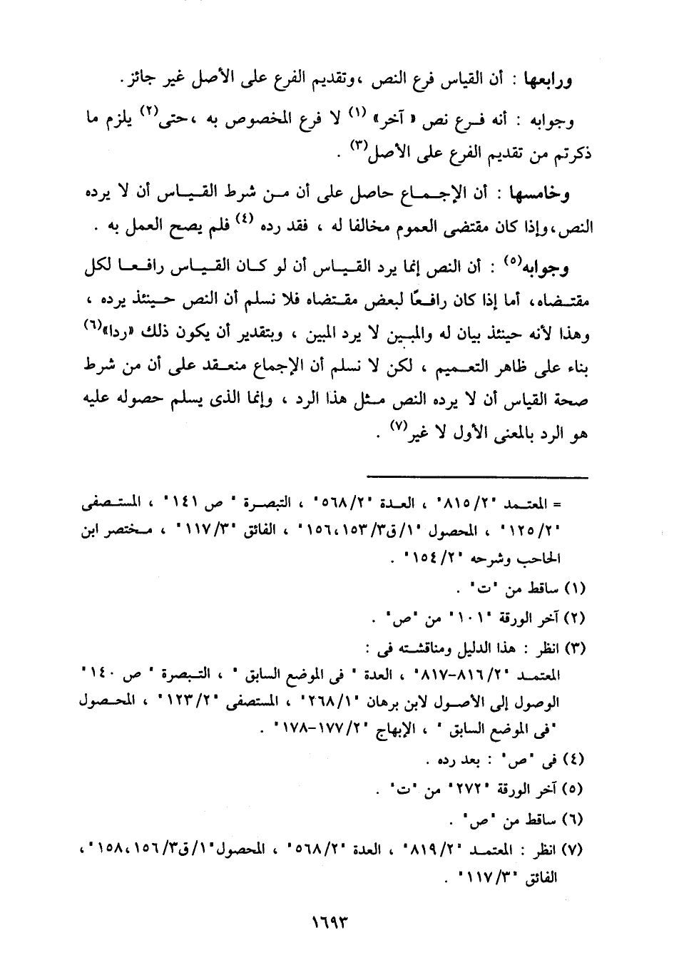 وجوابه: أنه فرع نص "آخر" لا فرع المخصوص به، حتى يلزم ما ذكرتم من تقديم الفرع على الأصل.