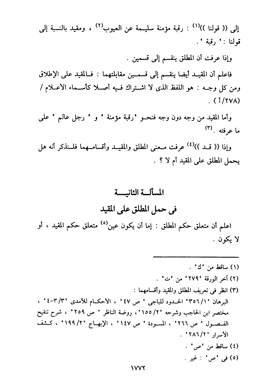 وإذا عرفت أن المطلق ينقسم إلى قسمين.