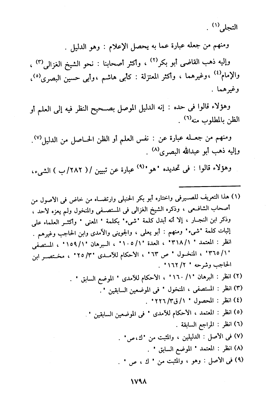 وإليه ذهب القاضي أبو بكر، وأكثر أصحابنا: نحو الشيخ الغزالي، والإمام، وغيرهما، وأكثر المعتزلة: كأبي هاشم، وأبي حسين البصري، وغيرهما.