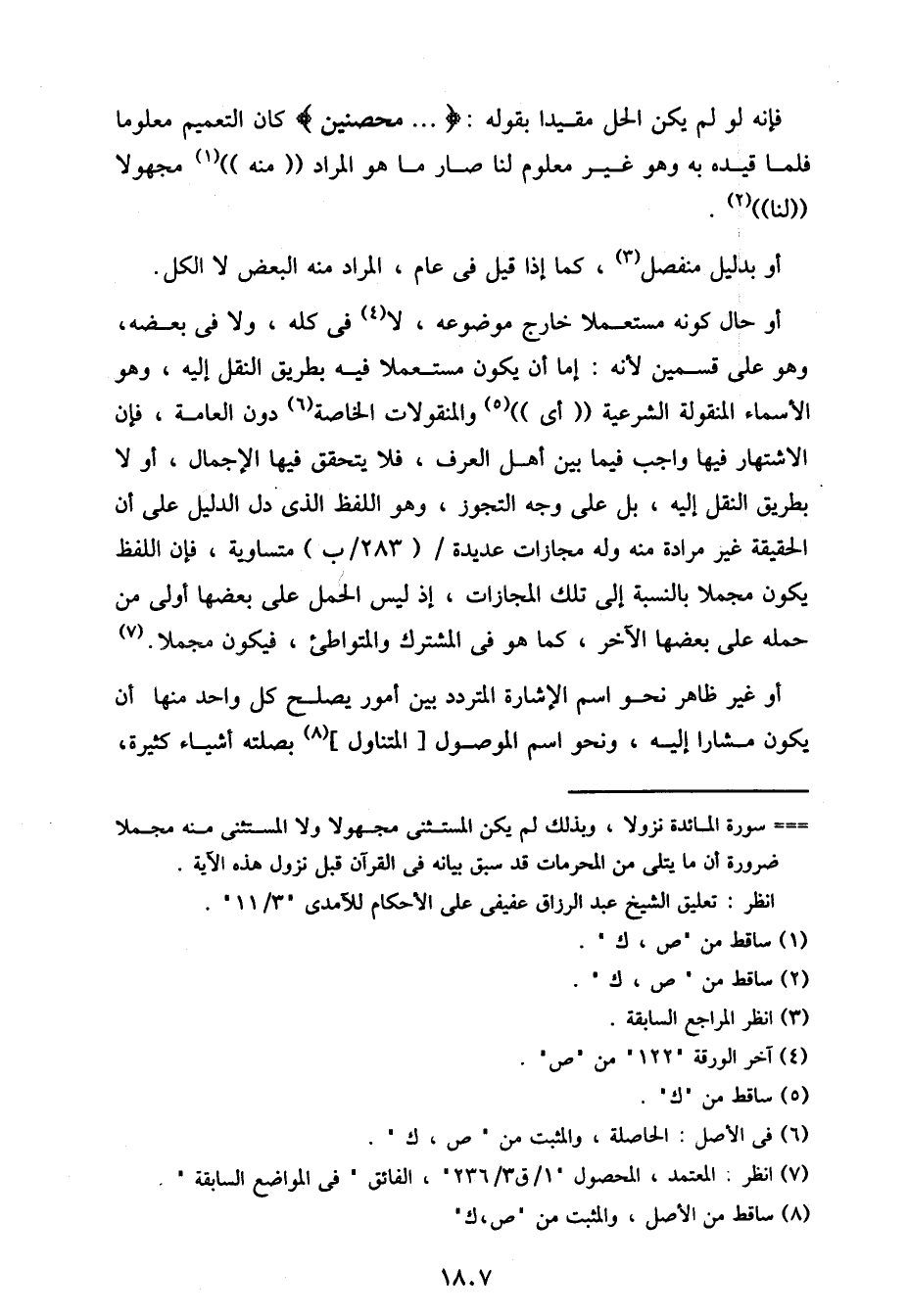 أو حال كونه مستعملا خارج موضوعه، لا في كله، ولا في بعضه، وهو على قسمين لأنه: إما أن يكون مستعملا فيه بطريق النقل إليه، وهو الأسماء المنقولة الشرعية "أي" والمنقولات الخاصة دون العامة، فإن الاشتهار فيها واجب فيما بين أهل العرف، فلا يتحقق فيها الإجمال، أو لا بطريق النقل إليه، بل على وجه التجوز، وهو اللفظ الذي دل الدليل على أن الحقيقة غير مرادة منه وله مجازات عديدة/ (283/ ب) متساوية، فإن اللفظ يكون مجملا بالنسبة إلى تلك المجازات، إذ ليس الحمل على بعضها أولى من حمله على بعضها الآخر، كما هو في المشترك والمتواطئ، فيكون مجملا.