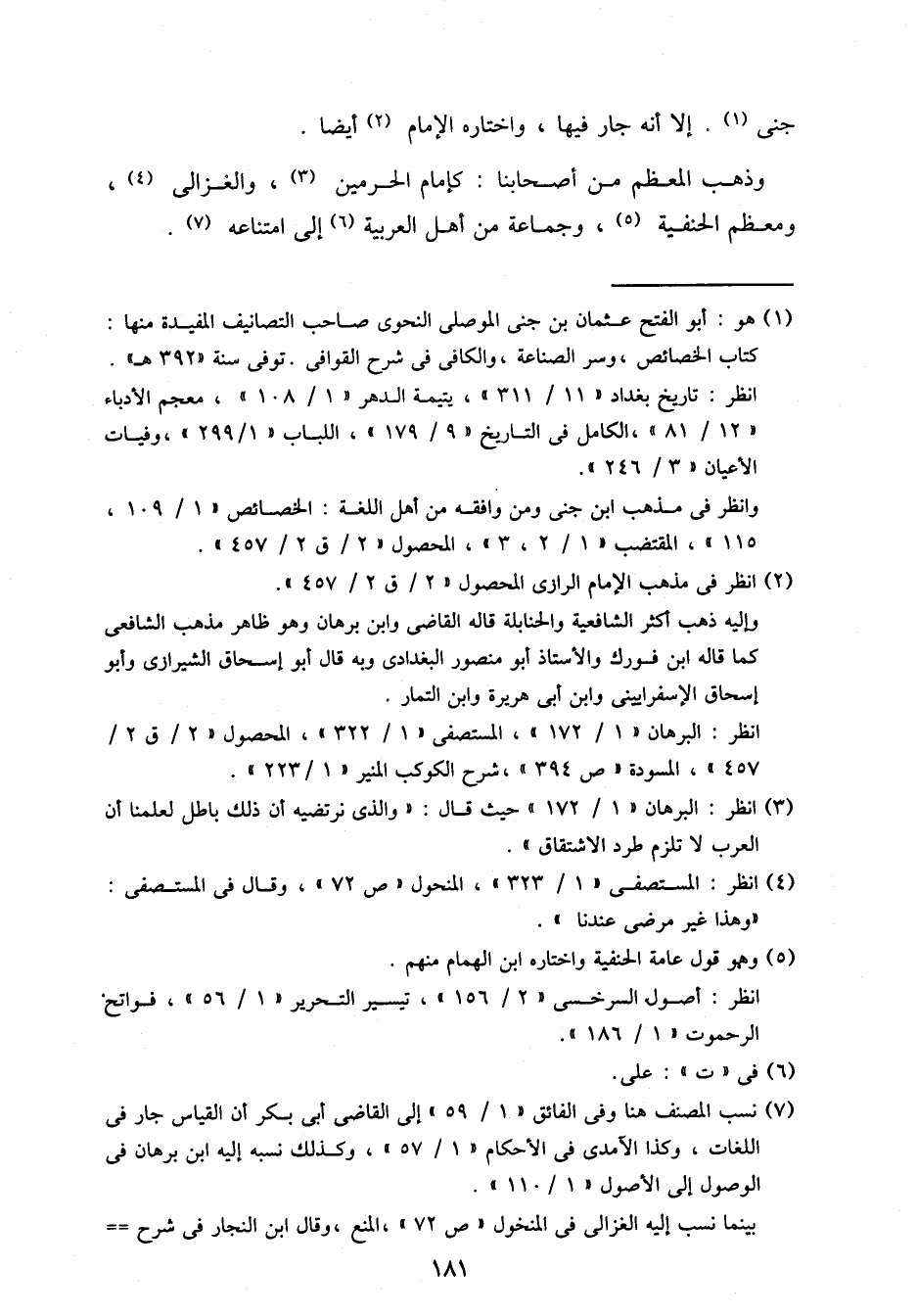 جني. إلا أنه جار فيها، واختاره الإمام أيضا.