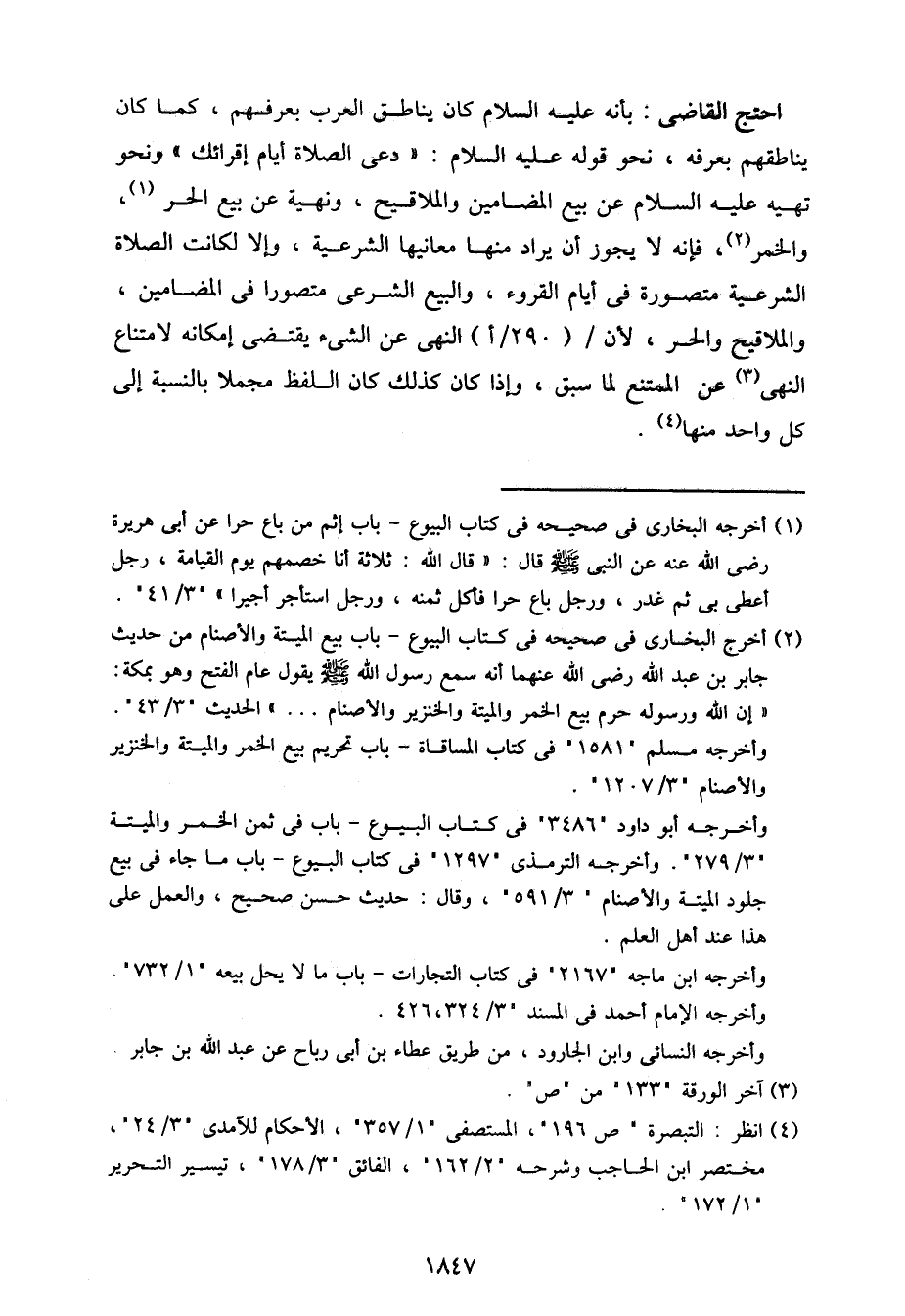 احتج القاضي: بأنه عليه السلام كان يناطق العرب بعرفهم، كما كان يناطقهم بعرفه، نحو قوله عليه السلام: "دعي الصلاة أيام إقرائك" ونحو نهيه عليه السلام عن بيع المضامين والملاقيح، ونهيه عن بيع الحر، والخمر، فإنه لا يجوز أن يراد منها معانيها الشرعية، وإلا لكانت الصلاة الشرعية متصورة في أيام القروء، والبيع متصورا في المضامين، والملاقيح والحر، لأن/ (290/ أ) النهي عن الشيء يقتضي إمكانه لامتناع النهي عن الممتنع لما سبق، وإذا كان كذلك كان اللفظ مجملا بالنسبة إلى كل واحد منها.